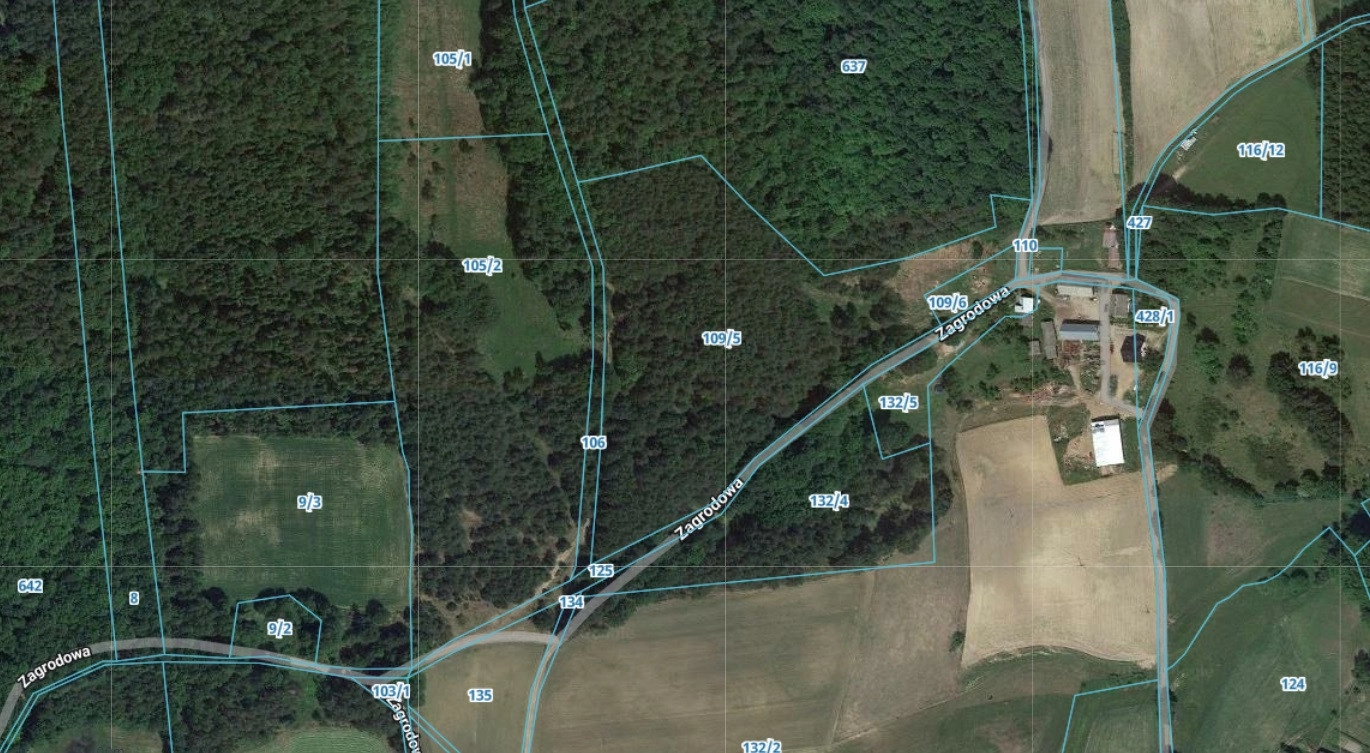Działka o numerze 132/4 i powierzchni ok. 11600 m2, zlokalizowana w pięknej okolicy, wśród lasów. Na terenie studium MPZP – zabudowa siedliskowa. Działka uzbrojona, obecnie zadrzewiona z możliwością oczyszczenia.