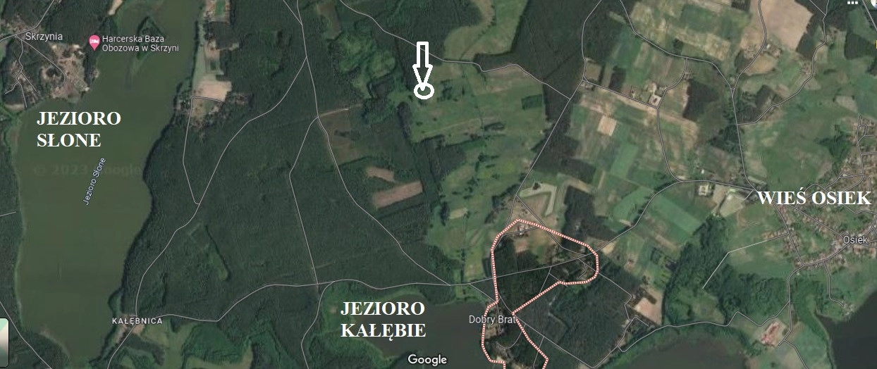 Działka położona przy lesie, do ośrodka wypoczynkowego i jeziora 5/10 minut spacerkiem. Ośrodek ,,DOBRY BRAT’’ /