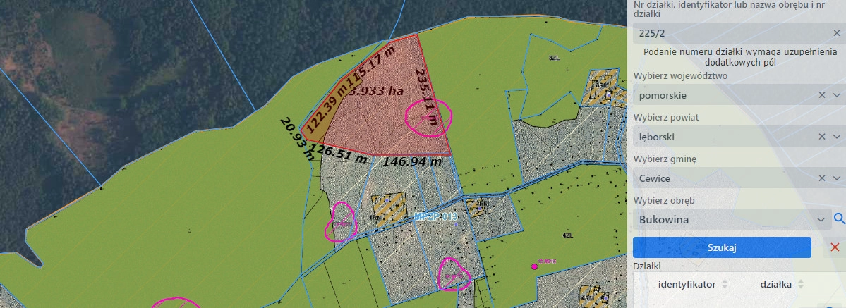 Duża działka rolna nr 225/2 o powierzchni 39 700 m2 (3,97 HA) w otulinie lasu w Obrębie : Bukowina, Gmina: Cewice
