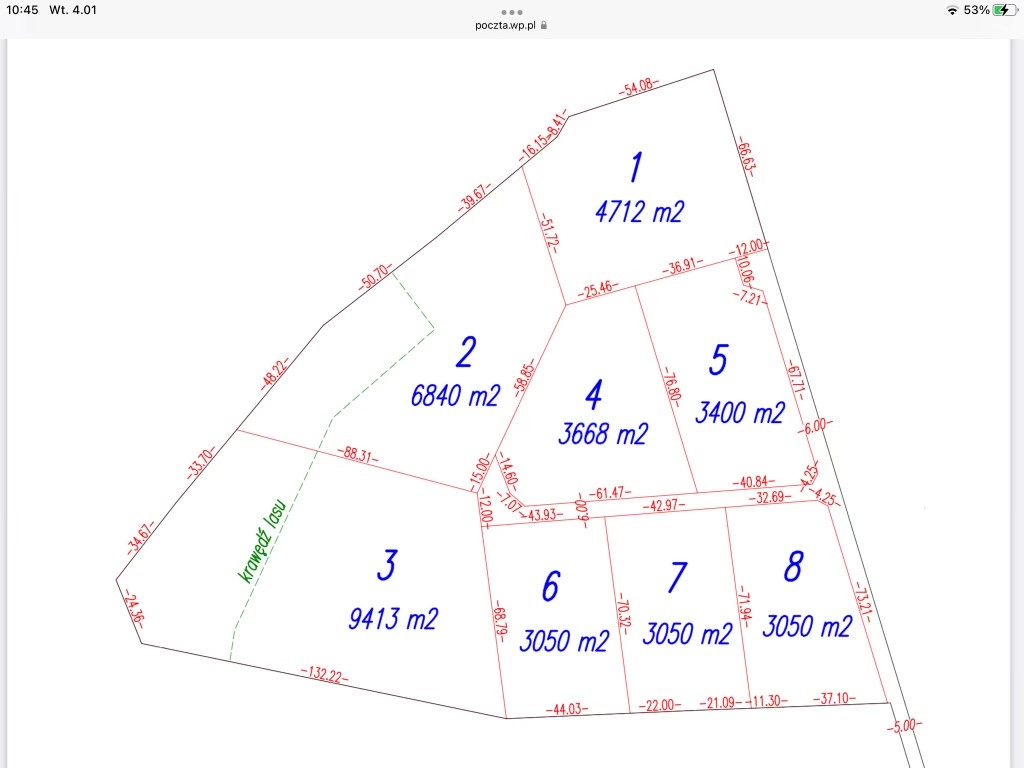 Media: woda przy działce, prąd w drodze działki.