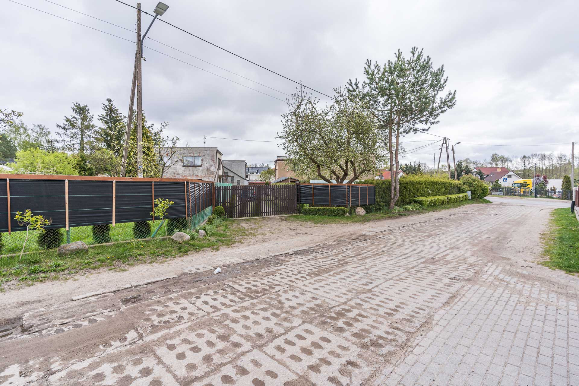 Działka narożna posiadająca dostęp do drogi publicznej z dwóch stron.