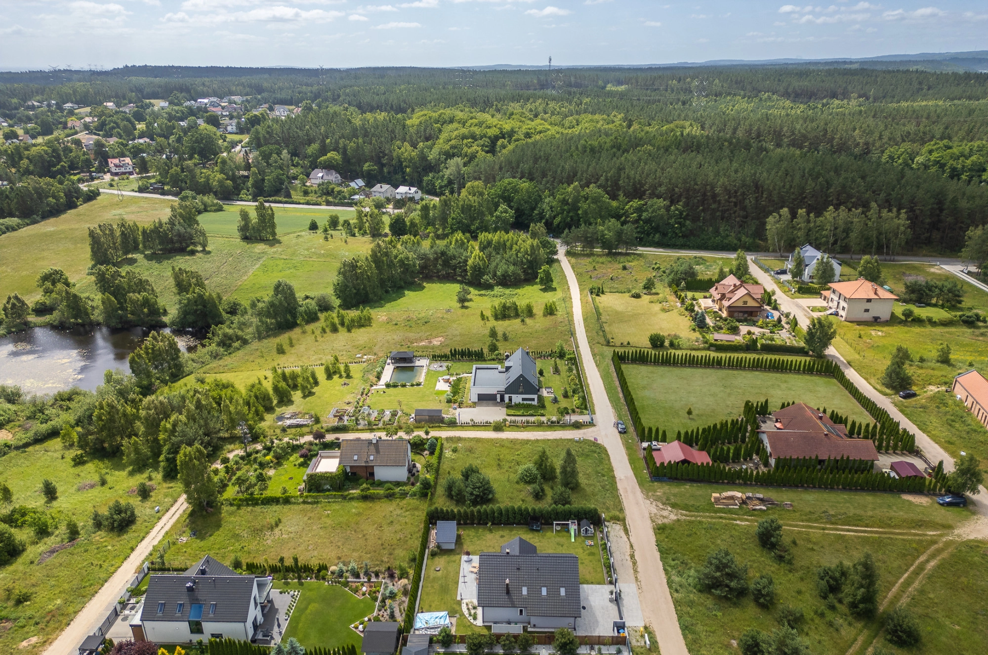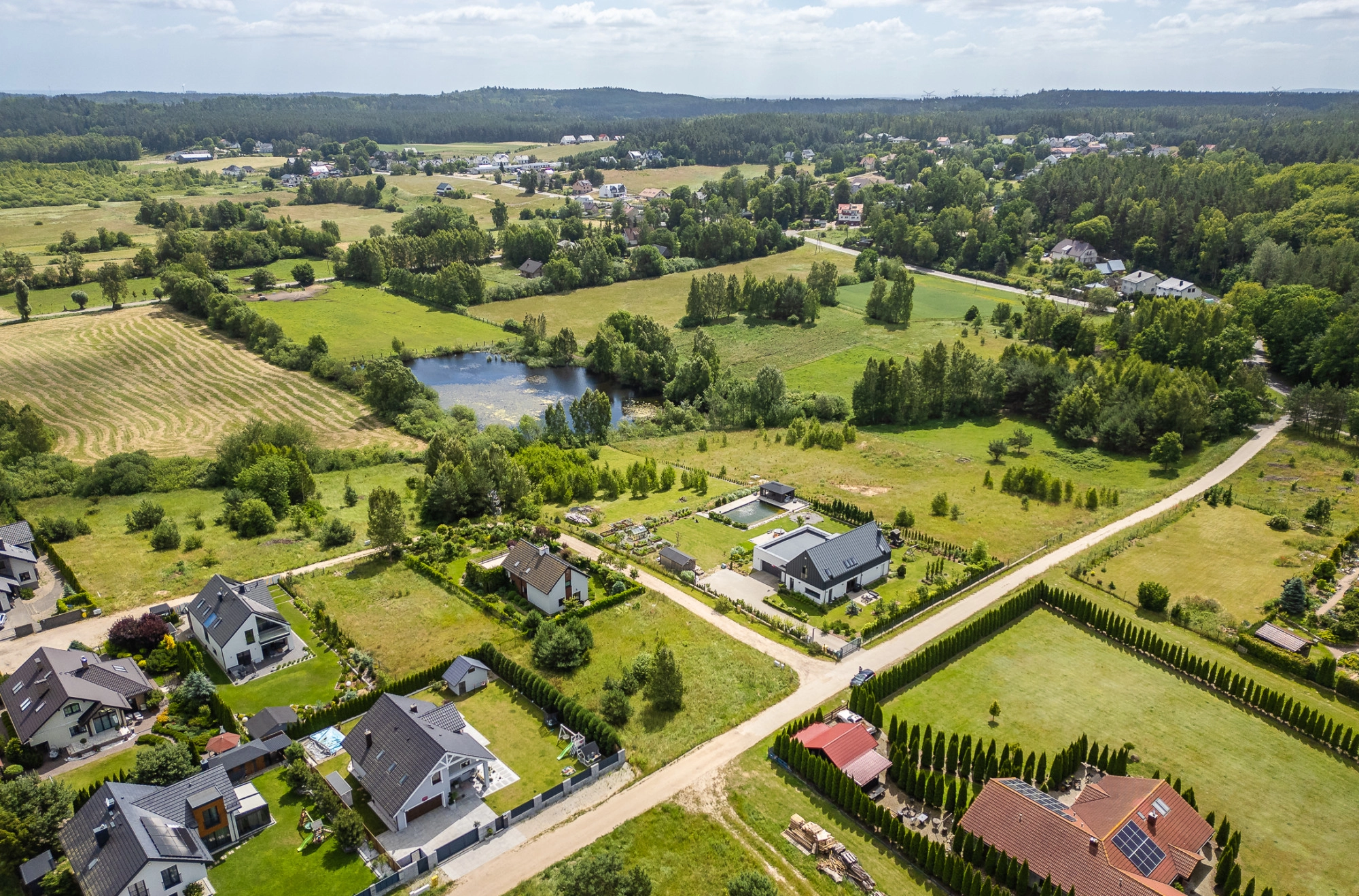 OKOLICA: Działka znajduje się w malowniczej miejscowości Sulmin (powiat kartuski, gmina Żukowo), Bliskość lasu i urokliwych łąk nadaje otoczeniu sielskości, poczucia spokoju i prywatności. Sąsiadująca zabudowa to inne, nieliczne domy wolnostojące, co czyni to miejsce niezwykle kameralnym, wolnym od zgiełku miasta, czy hałasu komunikacyjnego. Jest to miejscowość położona w odległości 5 km od administracyjnych granic Gdańska. Najbliższy sklep spożywczy LIVIO położony jest około kilometra od działki.