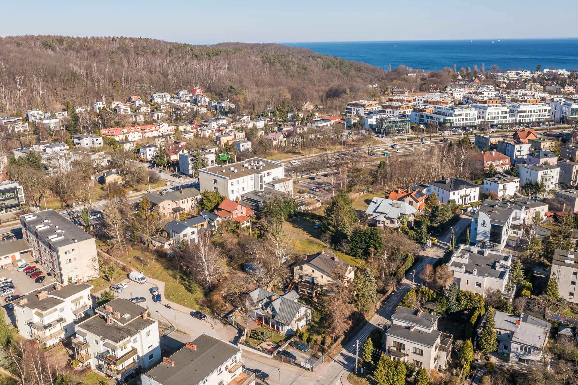 działka zlokalizowana jest w jednej z najbardziej pożądanych i prestiżowych dzielnic Gdyni – Orłowie w sąsiedztwie niskiej willowej zabudowy jednorodzinnej. Działkę otaczają liczne tereny zielone oraz rekreacyjne, idealne dla ludzi ceniących sobie ciszę i spokój oraz lubiących aktywnie spędzać czas wolny, jednocześnie nie rezygnując z życia w mieście. Charakterystycznym elementem Orłowa jest klif i molo, który znajduje się 1 km od nieruchomości. Wśród terenów zielonych, które się tutaj znajdują jest także Park Kolibkowski. W sąsiedztwie znajduje się również centrum handlowe „Klif”, które swoją nazwę zawdzięcza wspomnianemu już klifowi. Z Orłowa można bezproblemowo dojechać zarówno do centrum Gdyni 4 km, jak i Sopotu 5km. Do przystanku PKP/SKM Orłowo mamy około 550 m a do najbliższego autobusu tylko 300 m. Dla najmłodszych znajdziemy przedszkole oddalone o jedyne 250 m i szkołę o 400 m.