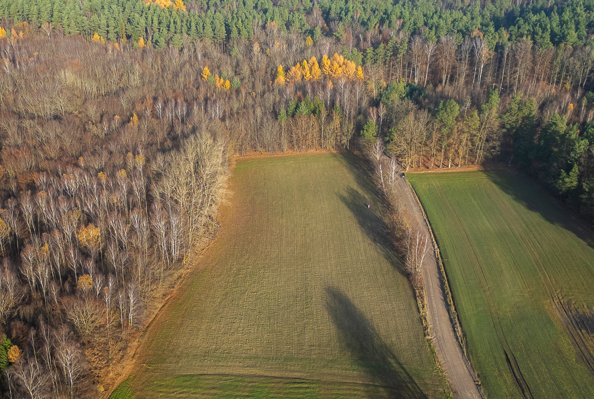 Działka rolna / budowlana o powierzchni 11.070 m² (1,107 ha). Kształt regularny, zbliżony do prostokąta