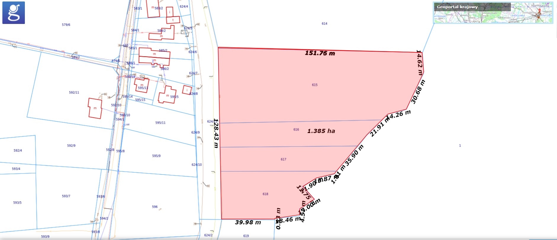 Przedmiotem sprzedaży są działki o numerach ewidencyjnych: 615, 616, 617, 618 o łącznej powierzchni 13700 m2. Na sąsiedniej działce o nr 619 ma powstać gminna MARINA, co mocno wpłynie na atrakcyjność przedmiotowych działek. Teren idealny pod kemping!