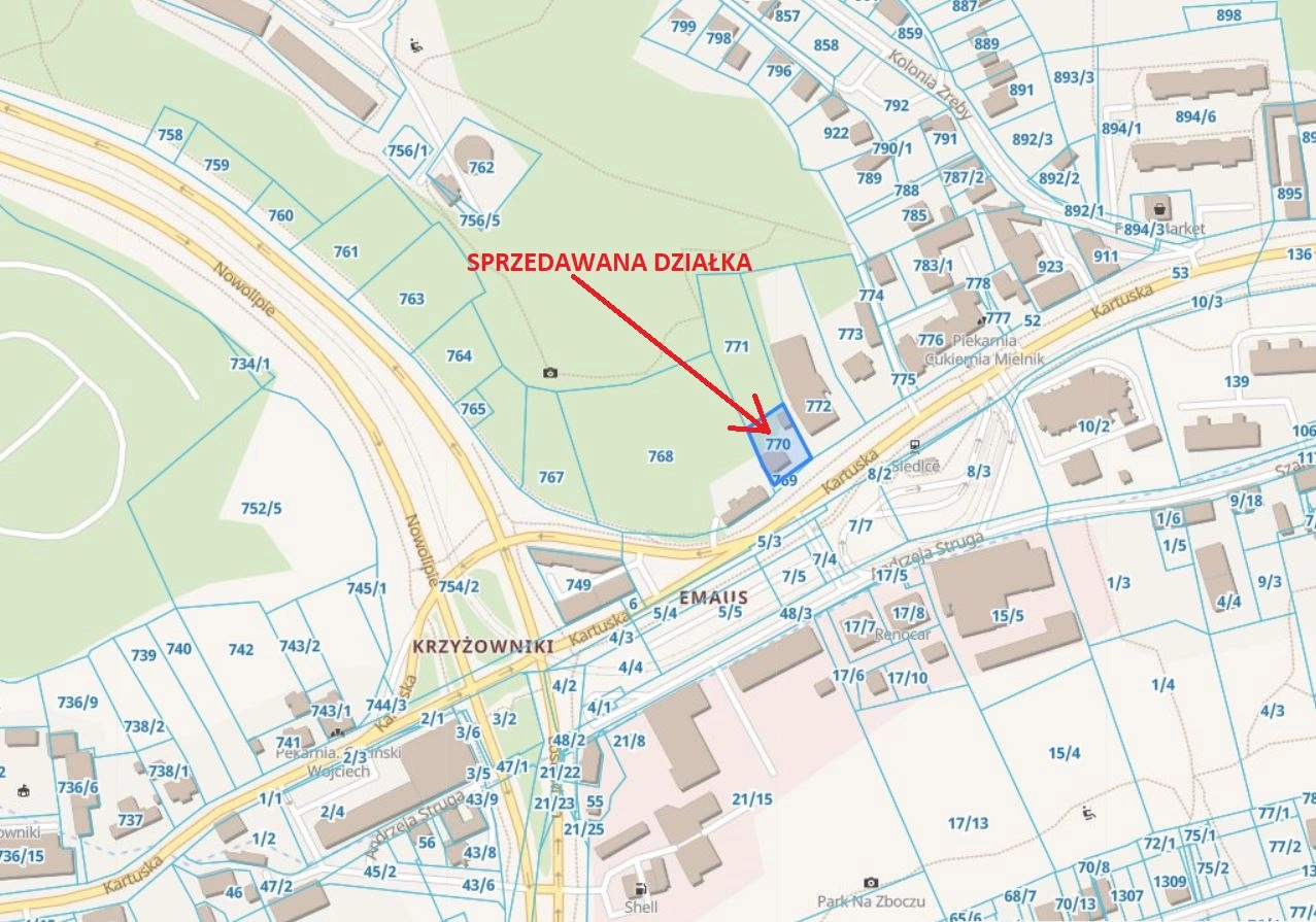 LOKALIZACJA: działka znajduje się w gdańskiej dzielnicy Siedlce, w niezwykle widocznym punkcie u zbiegu ulic Kartuskiej, Nowolipie i Łostowickiej. Nie sposób jej nie zauważyć, gdyż codziennie przejeżdżają tędy tysiące samochodów, mijają ją tramwaje i autobusy, a także piesi. W pobliżu pełne zaplecze handlowo-usługowe, szkoła, przedszkole, apteka, Galeria Morena z Carrefourem, urzędy, kościół, punkty gastronomiczne, poczta i wiele innych. Sąsiadująca zabudowa to obiekty handlowo usługowe, wysokie i niskie bloki mieszkalne, jak również kamienice.