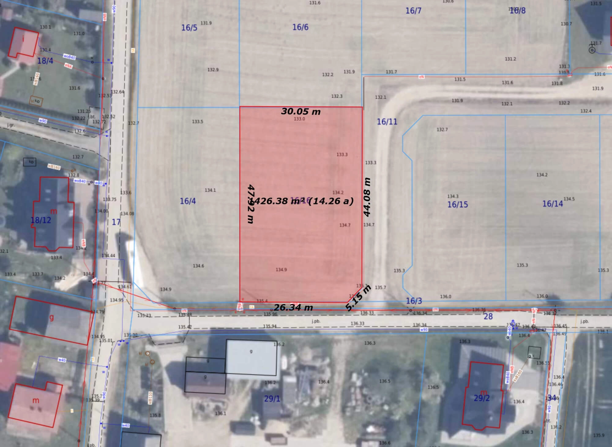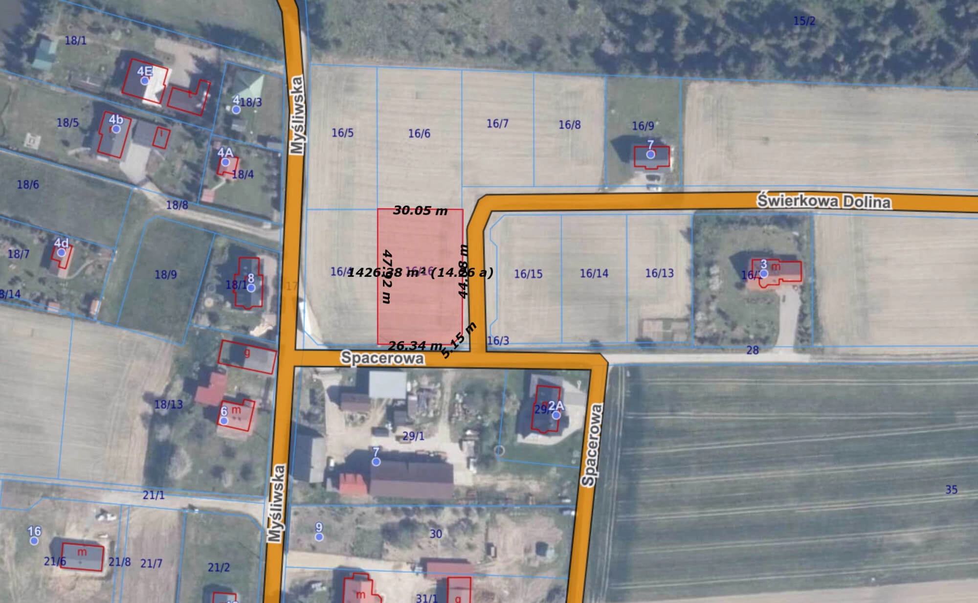 Działki pod zabudowę mieszkaniową o powierzchni 1424m2.