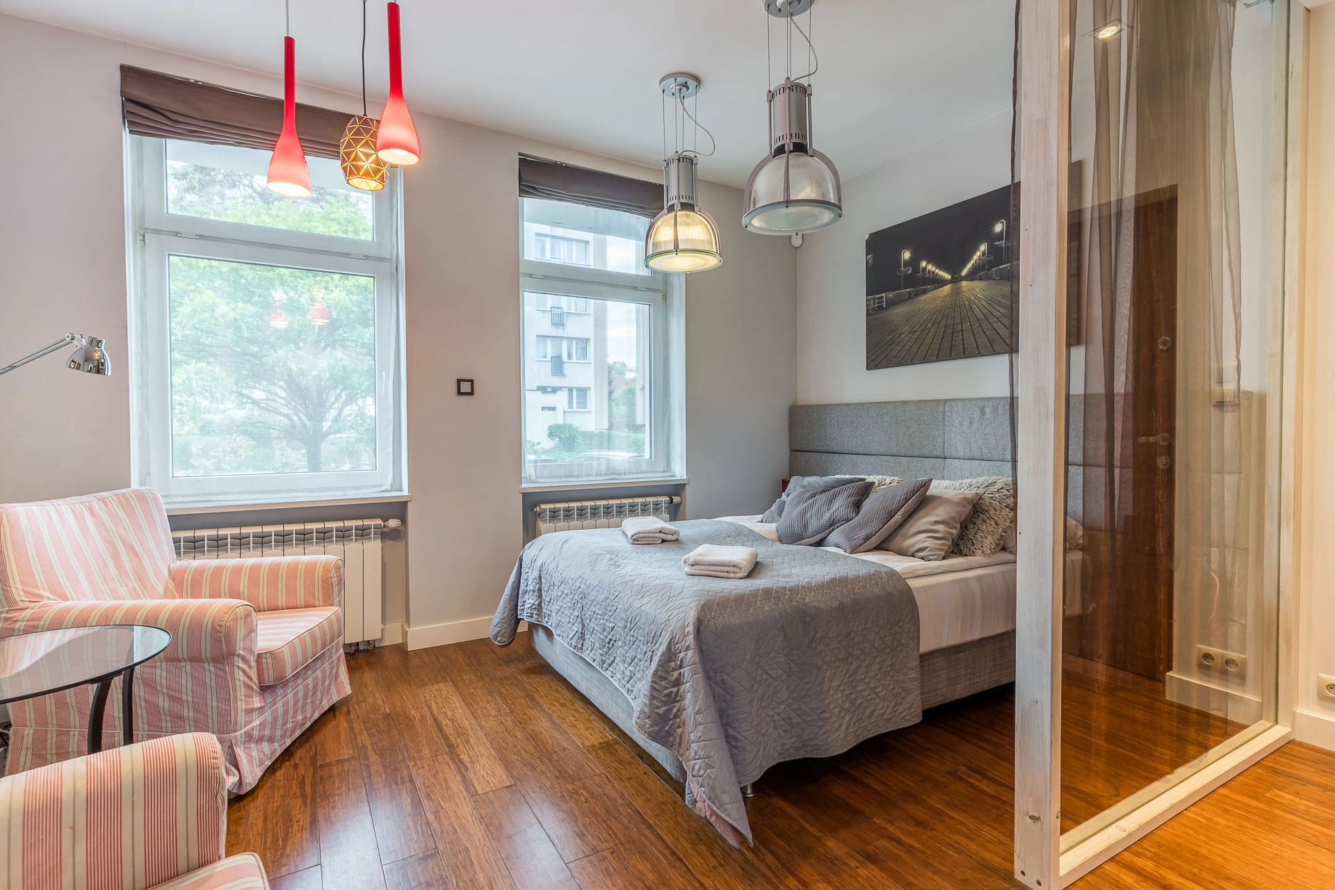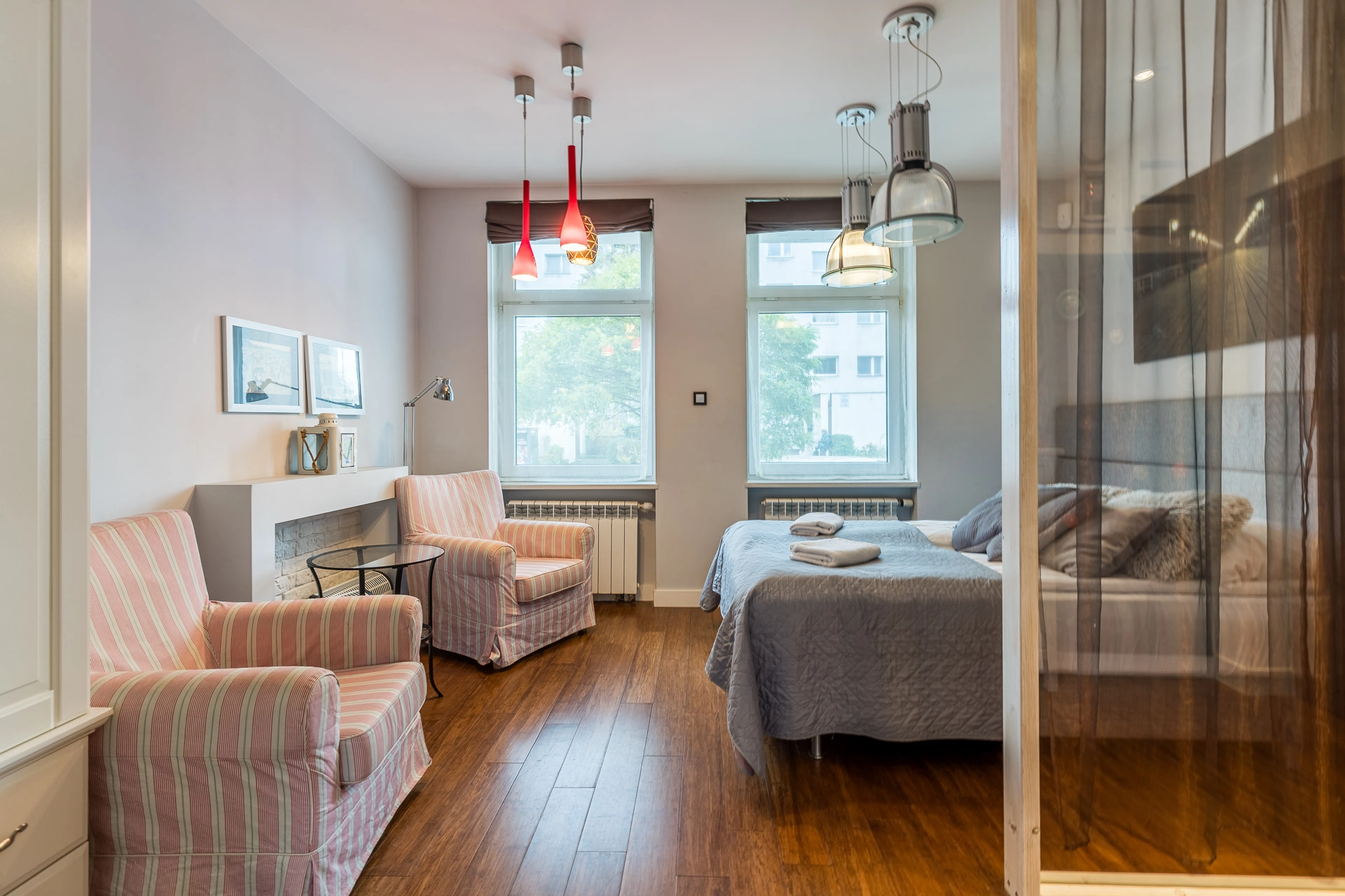 – otwarta sypialnia w stylu loftowym,