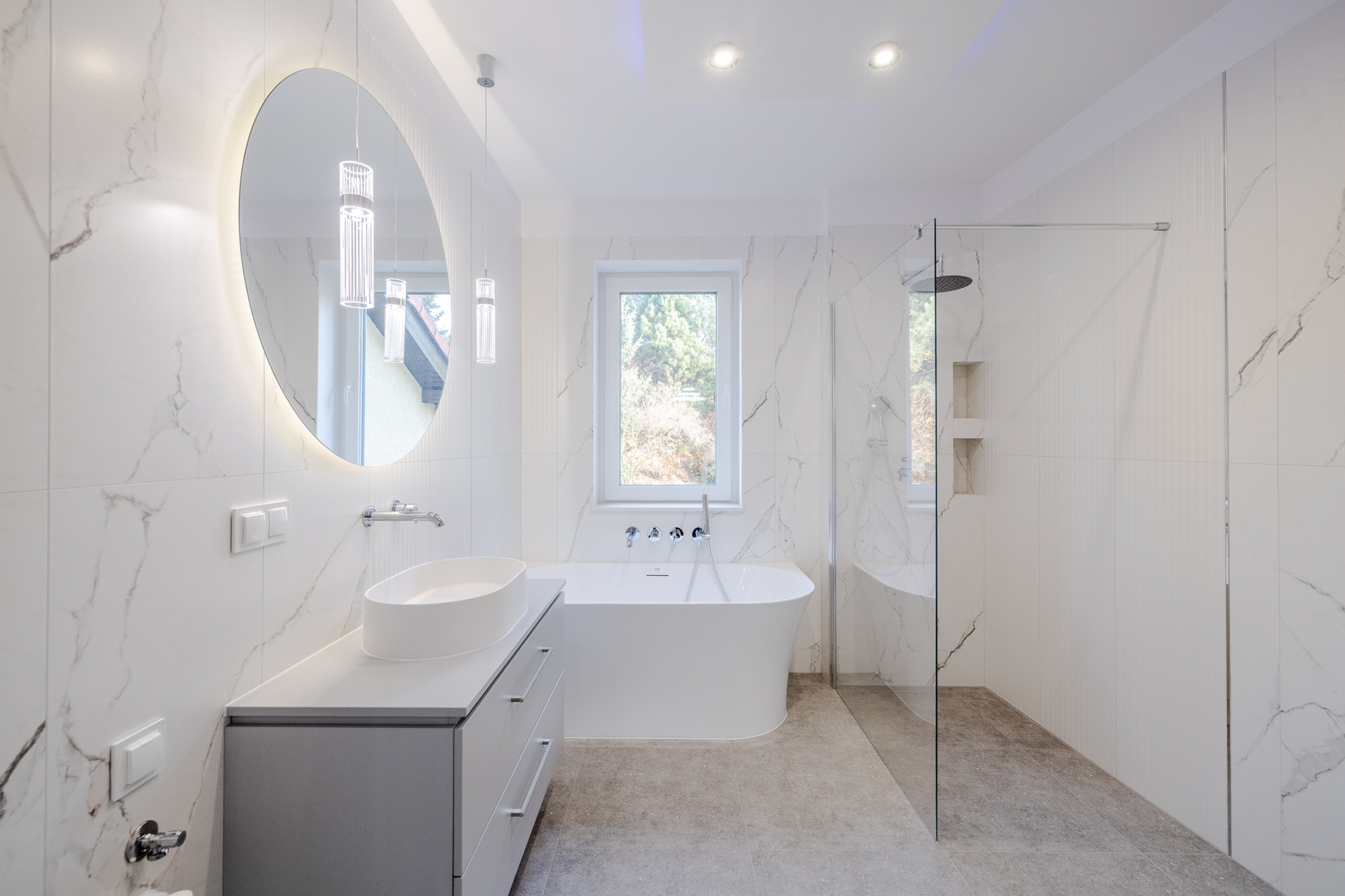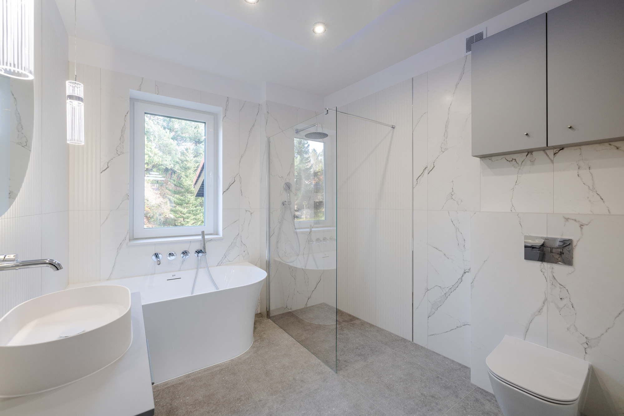 – łazienka – 7,20 m2 – z wanną i prysznicem, podtynkowe baterie Deante,