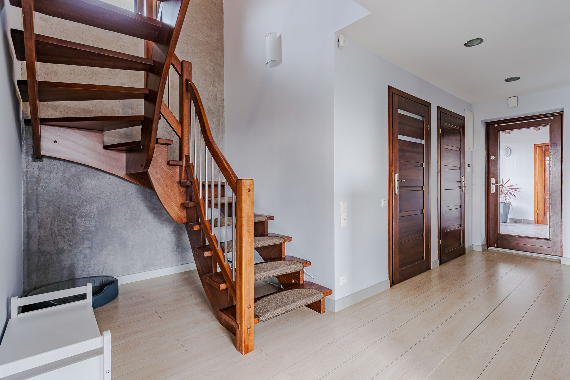 Schody zabiegowe drewniane.