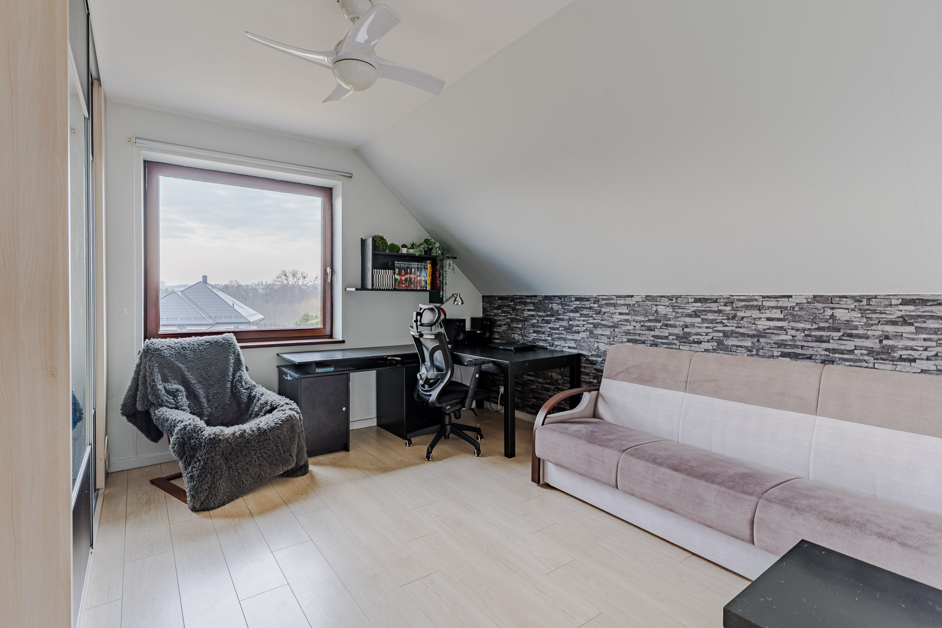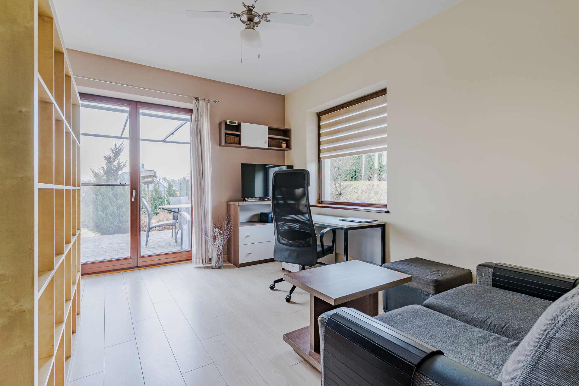 Salon klimatyczny z kominkiem posiadającym rozprowadzenie ciepła – pokój /gabinet o pow. 12,92 m2