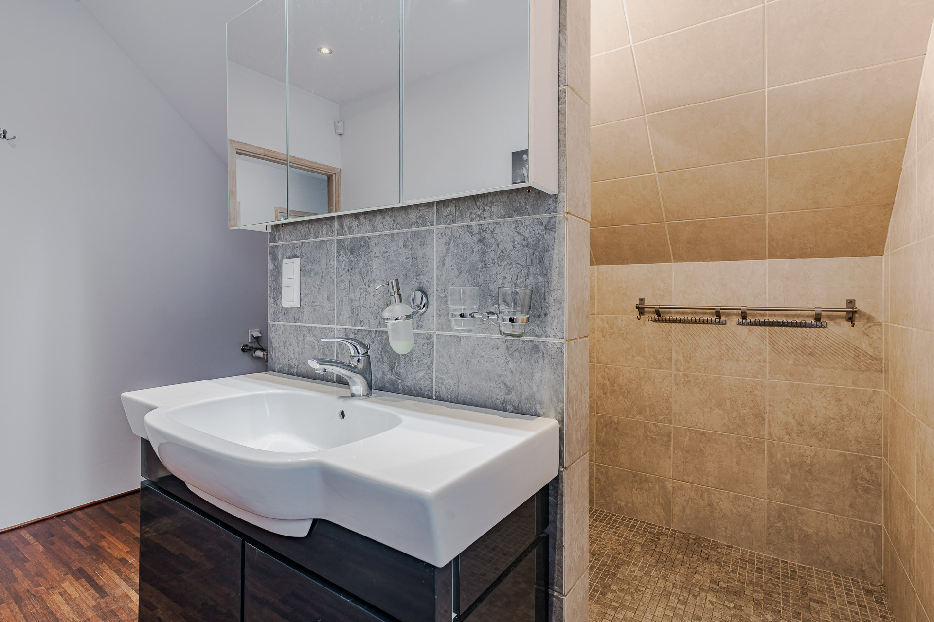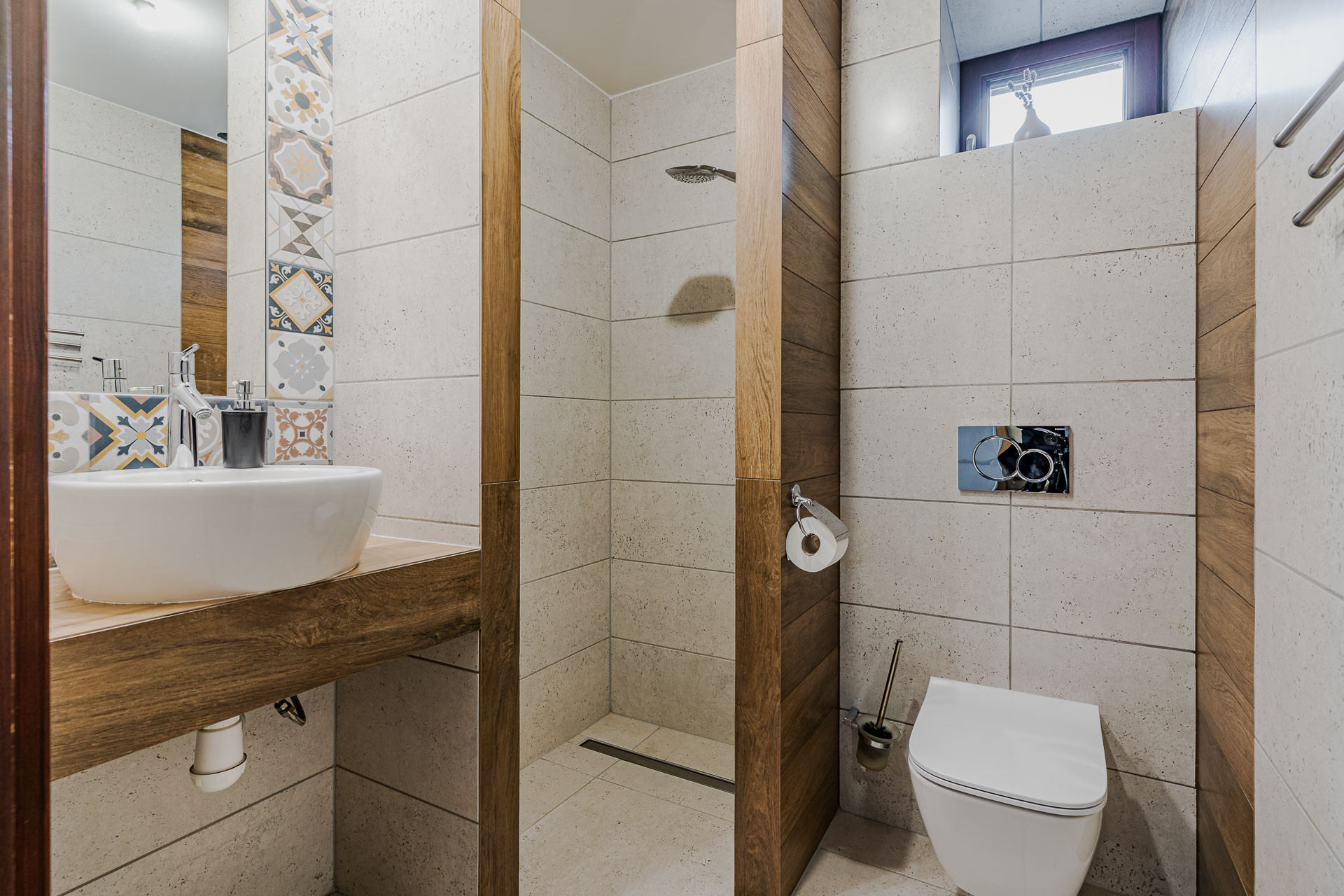 – łazienka z oknem, wyposażona w kabinę prysznicową (3,87m2)