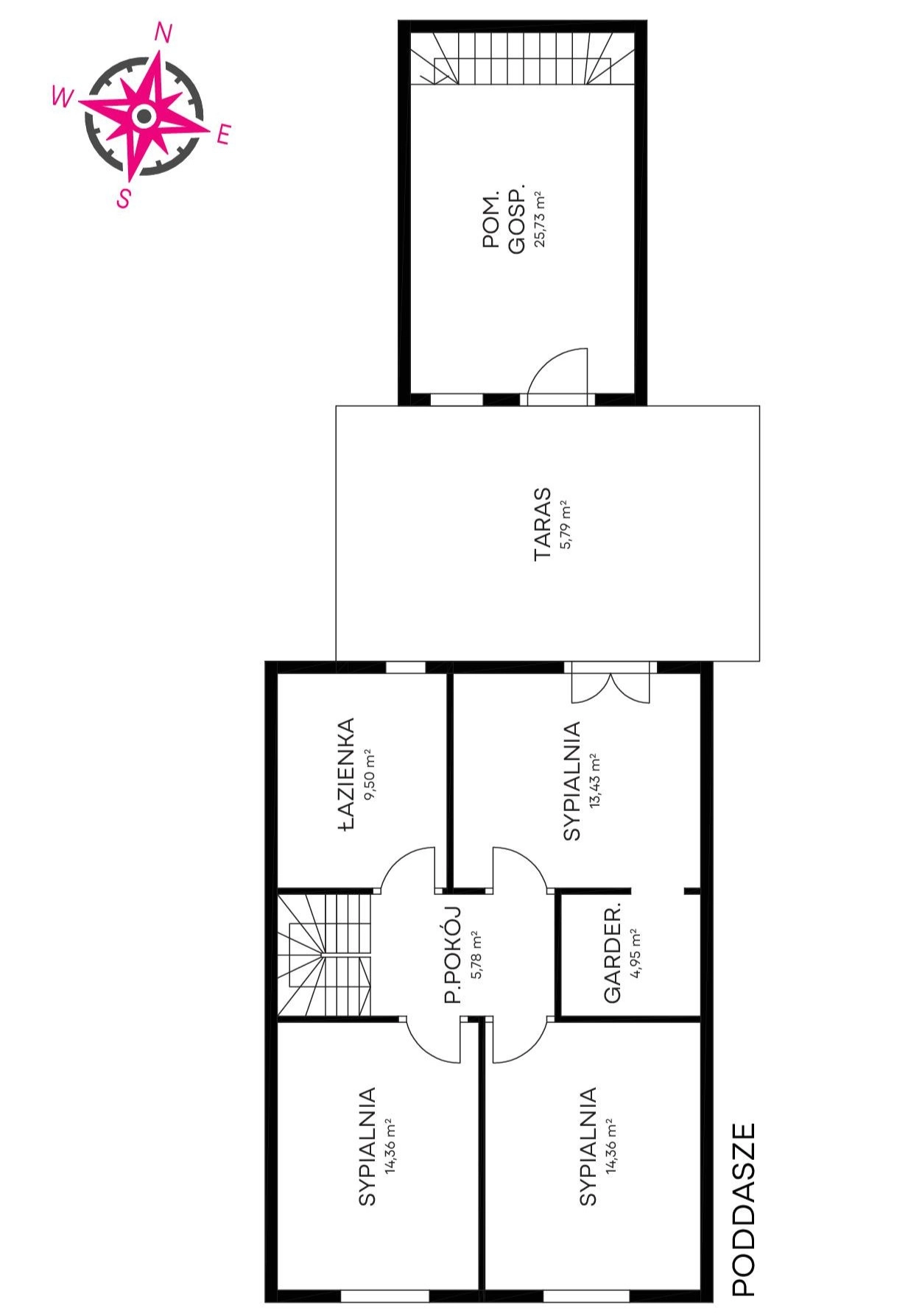 Piętro (poddasze) o łącznej powierzchni użytkowej 64 m2 (całkowitej 74,43)