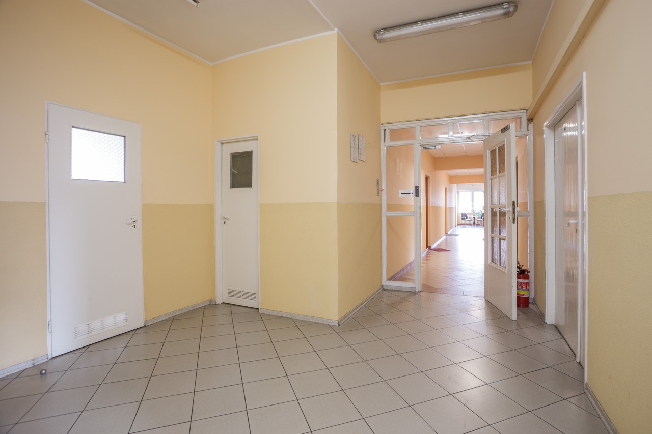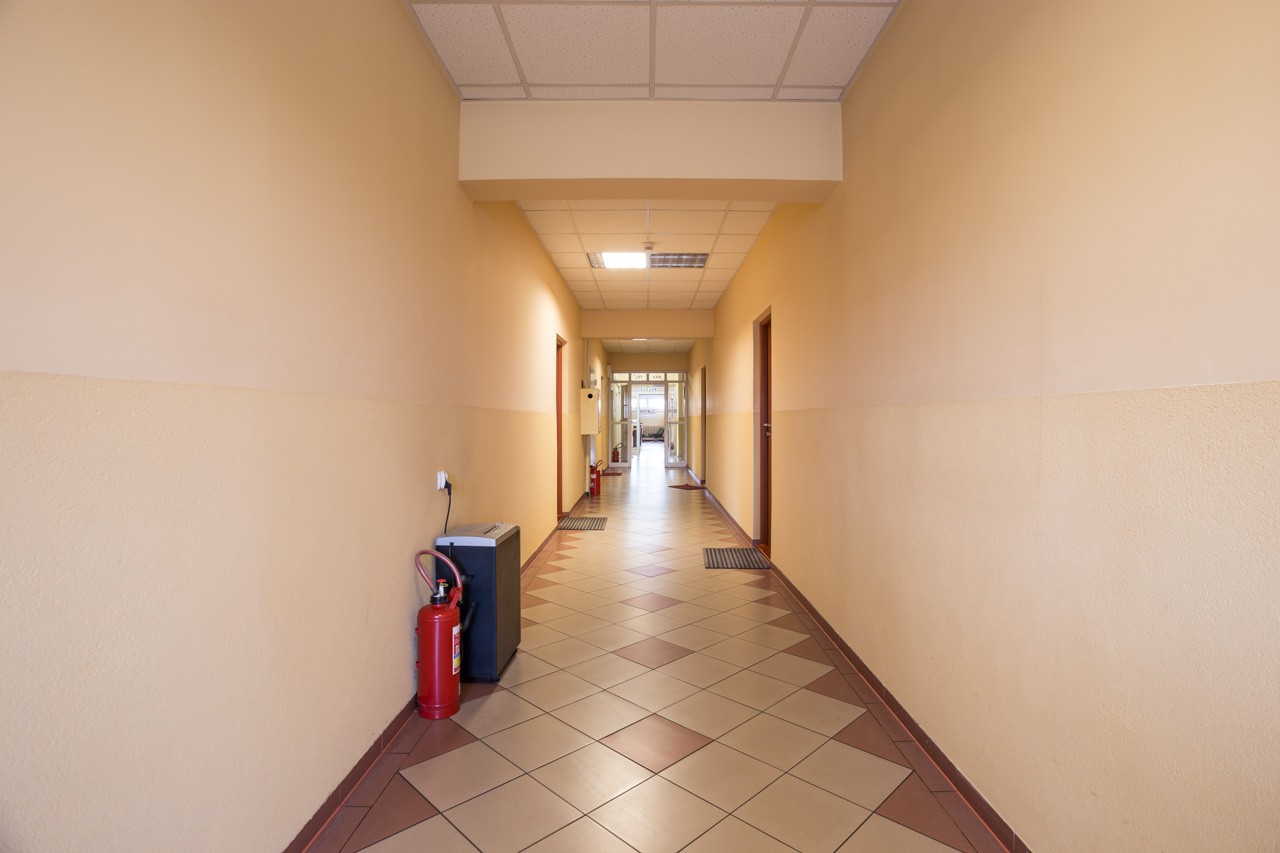 Na piętrze budynku znajdują się pomieszczenia biurowe, na parterze 2 hale. W tym momencie hale zaadaptowane są na warsztaty.