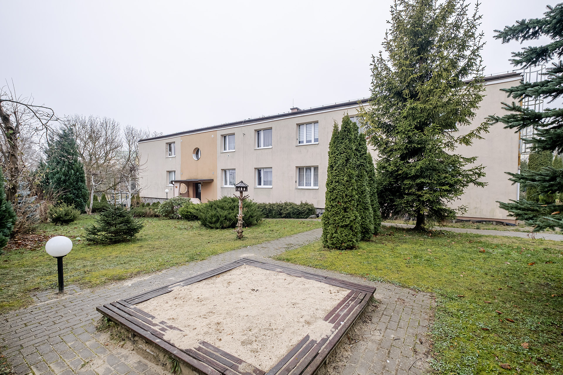 BUDYNEK: Niski, 1-piętrowy budynek, wybudowany w 1958 roku. Klatka schodowa jest czysta, szeroka i zadbana. Wejście zabezpieczone jest domofonem. Prężnie działająca wspólnota dba o budynek oraz części wspólne przed budynkiem, które również zabezpieczone są furtką z domofonem.