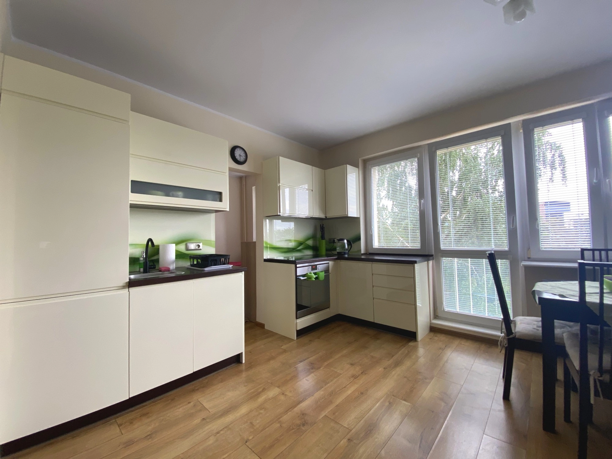 Mieszkanie jest po generalnym remoncie, podczas którego wymieniono wszystkie instalacje (elektryczna, wodno-kanalizacyjna). Na podłogach położono panele i płytki, okna są plastikowe, co gwarantuje dobrą izolację termiczną i akustyczną.