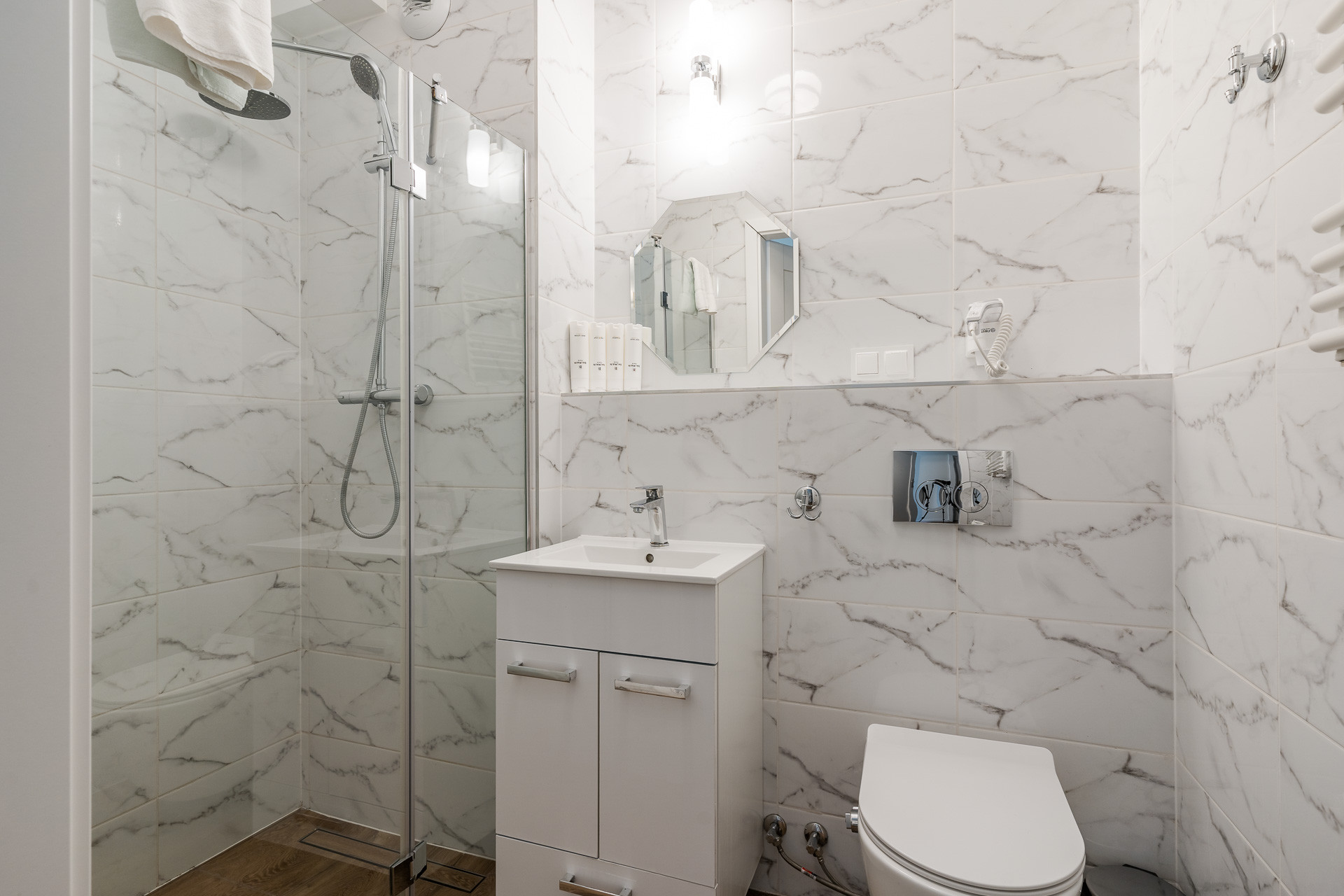 – łazienka: z prysznicem, umywalką, lustrem oraz WC ( 3,29 m2)