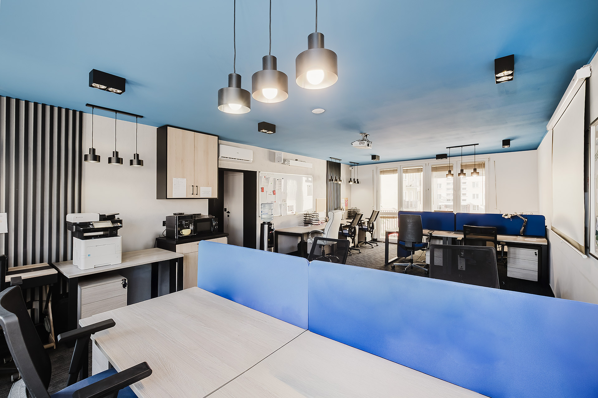 Poprzez dostawienie dwóch ścianek działowych w prosty i szybki sposób można podzielić przestrzeń biurową na trzy osobne, zamykane gabinety/biura.