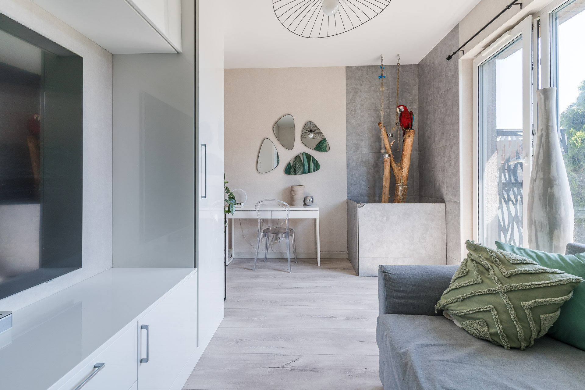 Nieruchomość zaprojektowana tak, by jak najlepiej wykorzystać przestrzeń. Panoramiczne okna sprawiają, że mieszkanie jest świetnie doświetlone, jasne i ciepłe. Kuchnia oraz zabudowy robione na zamówienie u stolarza. Mieszkanie wykończone ze smakiem z materiałów wysokiej jakości.