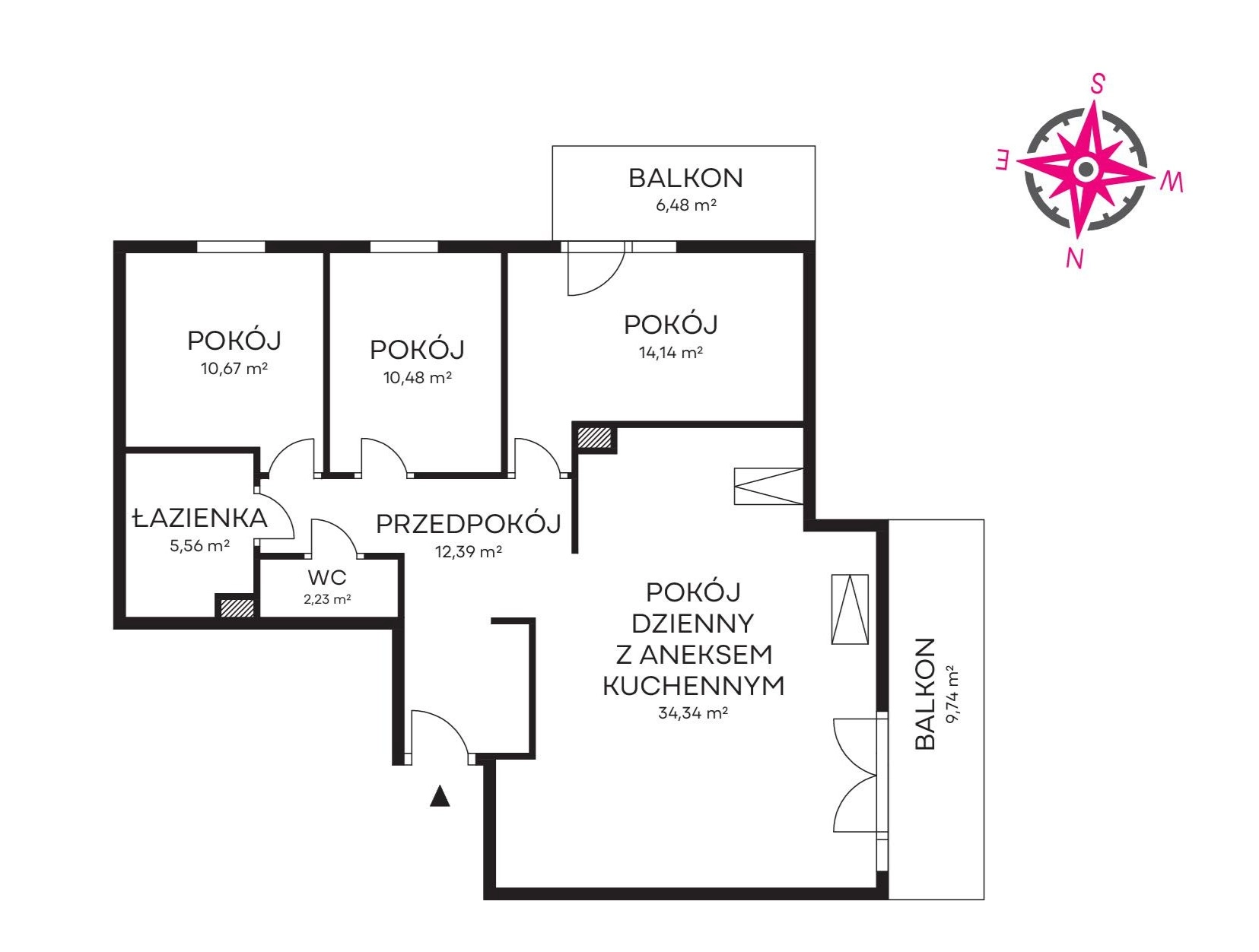 – sypialnia (14,14 m2) z wyjściem na balkon (6,48 m2),