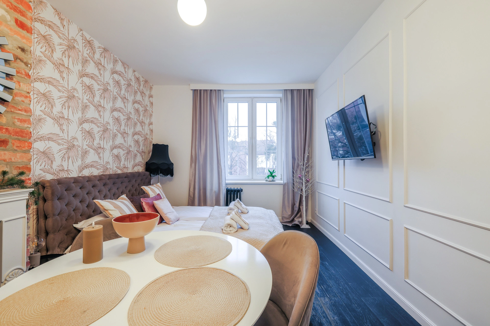 – 2 pokoje (14,56 m2 oraz 7,85 m2) – w każdym z nich szafy wolnostojące,