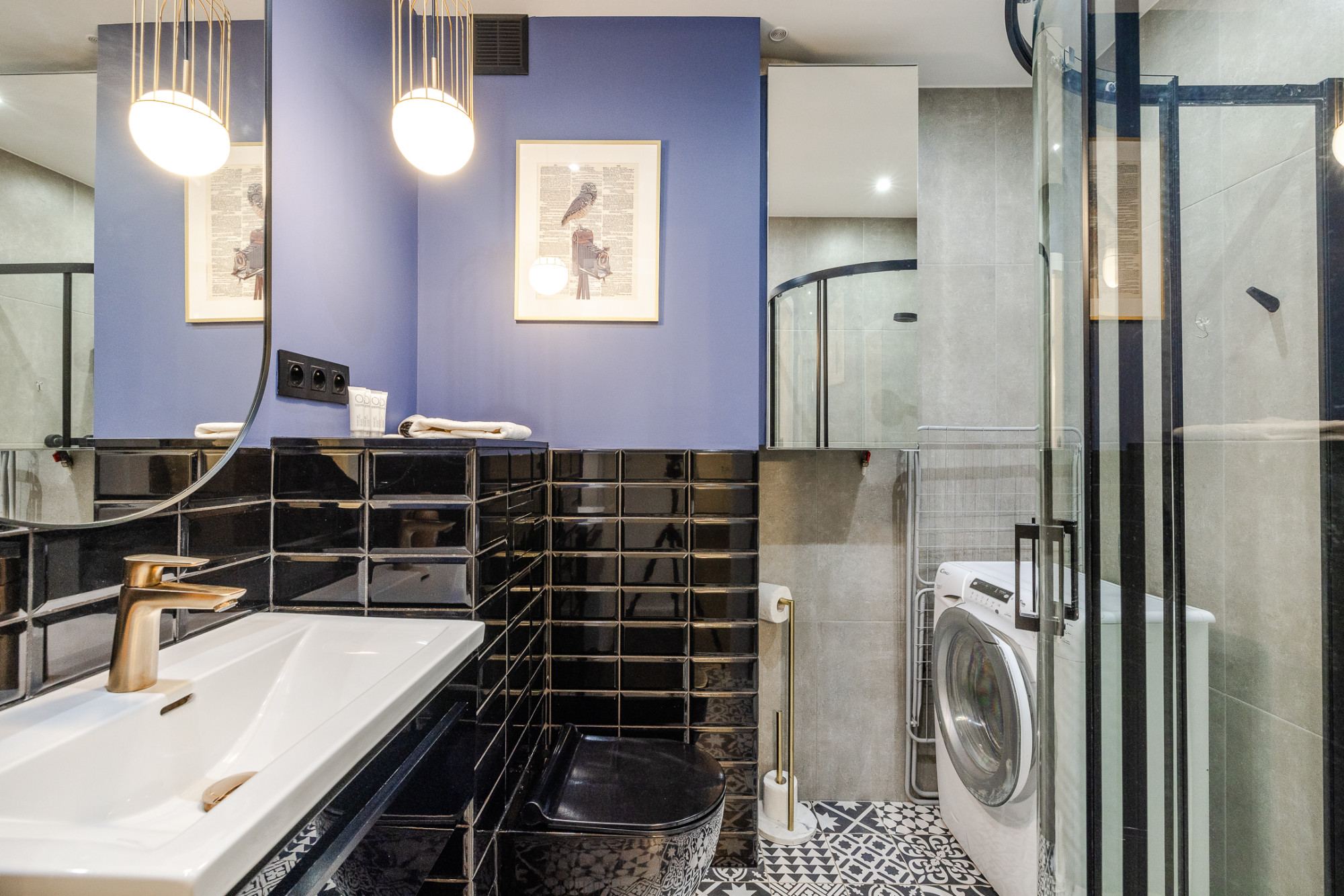 – łazienka (3,15 m2) z WC, prysznicem, pralką, umywalką, lustrem,