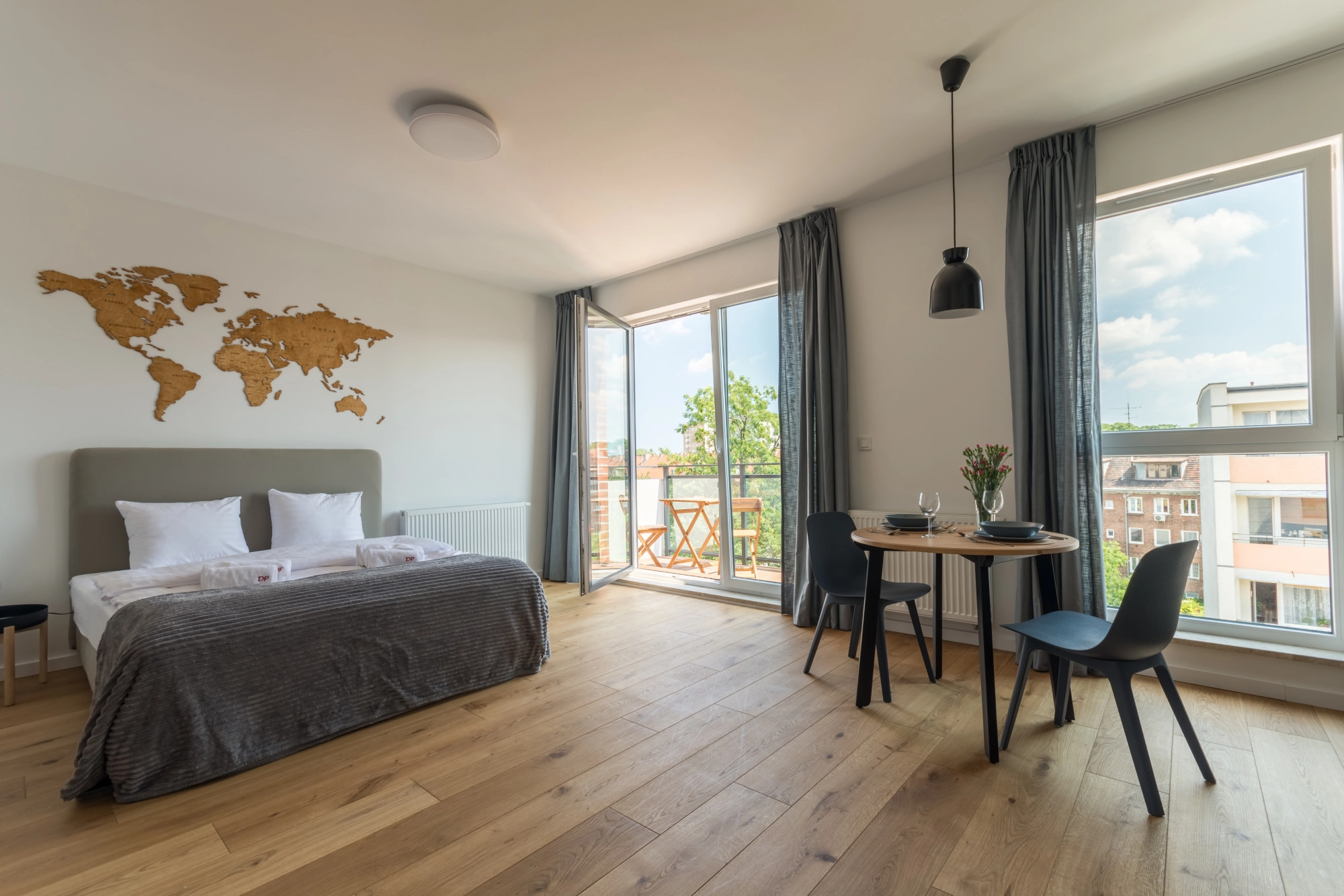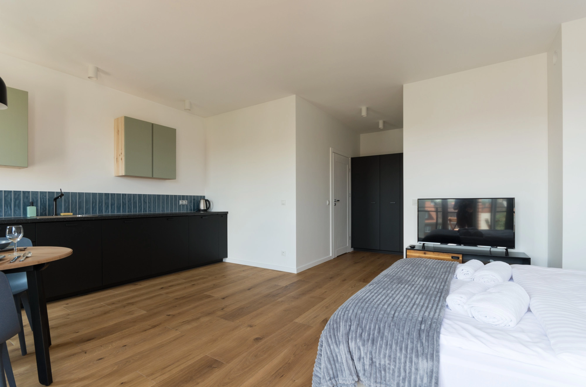 OKOLICA: mieszkanie znajduje się w gdańskiej dzielnicy Śródmieście. Jest to miejsce, które przeszło i nadal przechodzi gruntowną rewitalizację na szeroką skalę, przez co zyskało nowy blask, urok i stało się pożądaną destynacją mieszkaniową oraz inwestycyjną. Towarzysząca zabudowa to inne apartamentowce, a także starsza zabudowa w postaci niższych i wyższych bloków oraz kamienic. W pobliżu pełna infrastruktura handlowo-usługowa, kościół, apteki, mniejsze sklepy spożywcze i specjalistyczne, punkty usługowe o różnym przeznaczeniu, przychodnia, szkoła, przedszkole. Stąd już tylko kilka kroków do atrakcji i zabytków gdańskiego Starego Miasta, takich jak Fontanna Neptuna, Fontanna Czterech Kwartałów, Kościół Mariacki, Muzeum II Wojny Światowej i wiele, wiele innych.