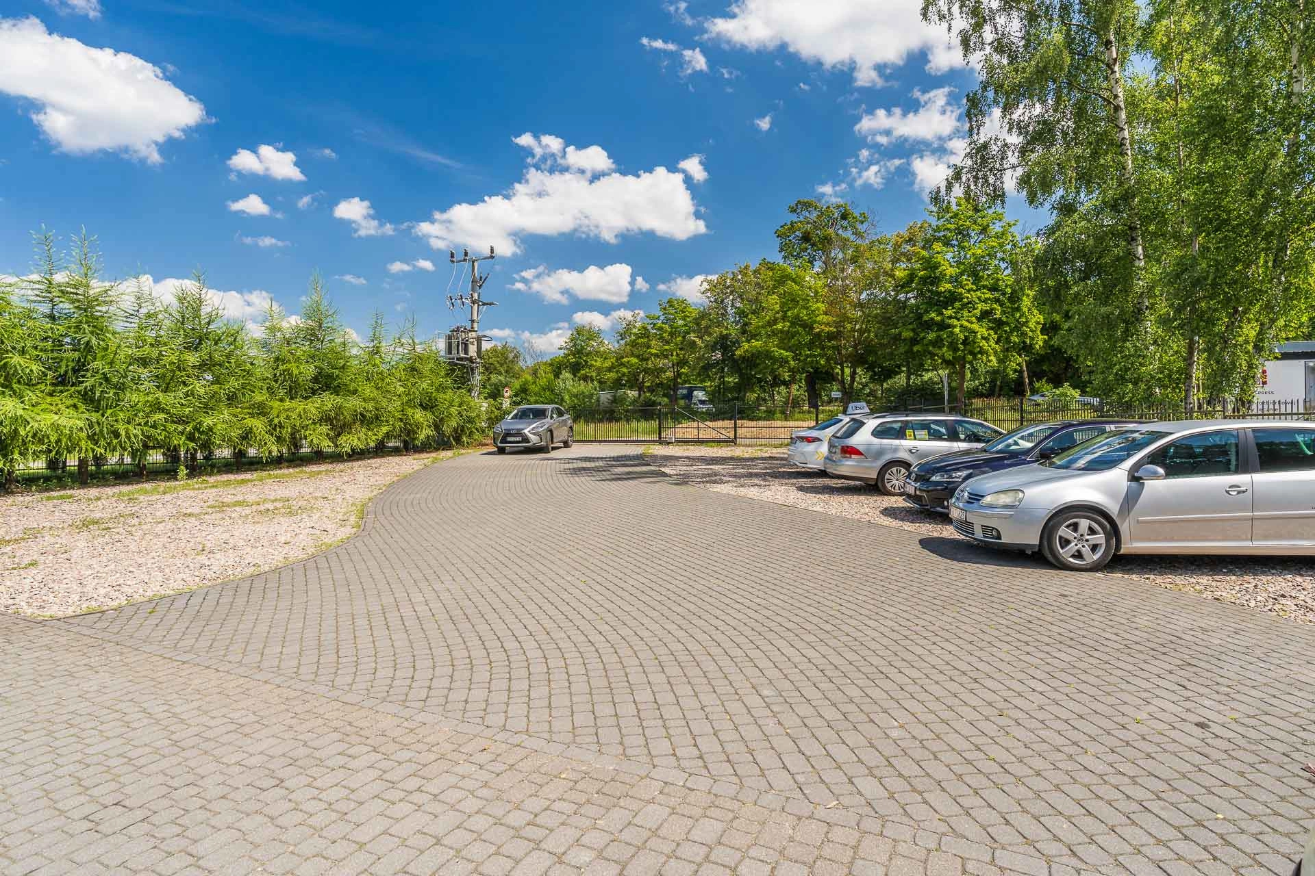 DZIAŁKA: płaska, utwardzona o powierzchni 2323m2, o przeznaczeniu usługowo mieszkaniowym. Wjazd przez szeroką bramę. Na terenie posesji jest 15 miejsc parkingowych, lub więcej. Znaczna część działki wyłożona kostką brukową. Całość ogrodzona płotem.