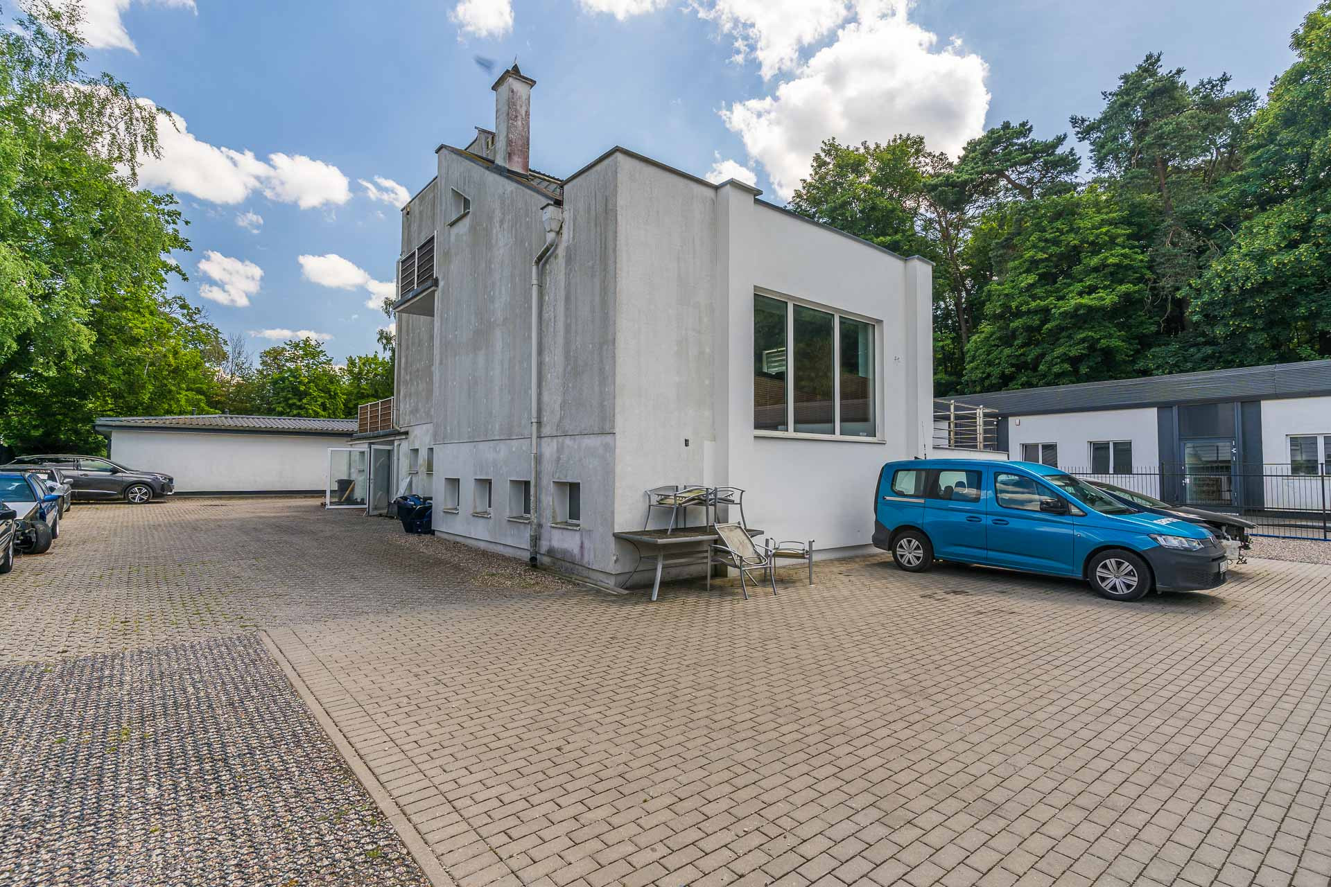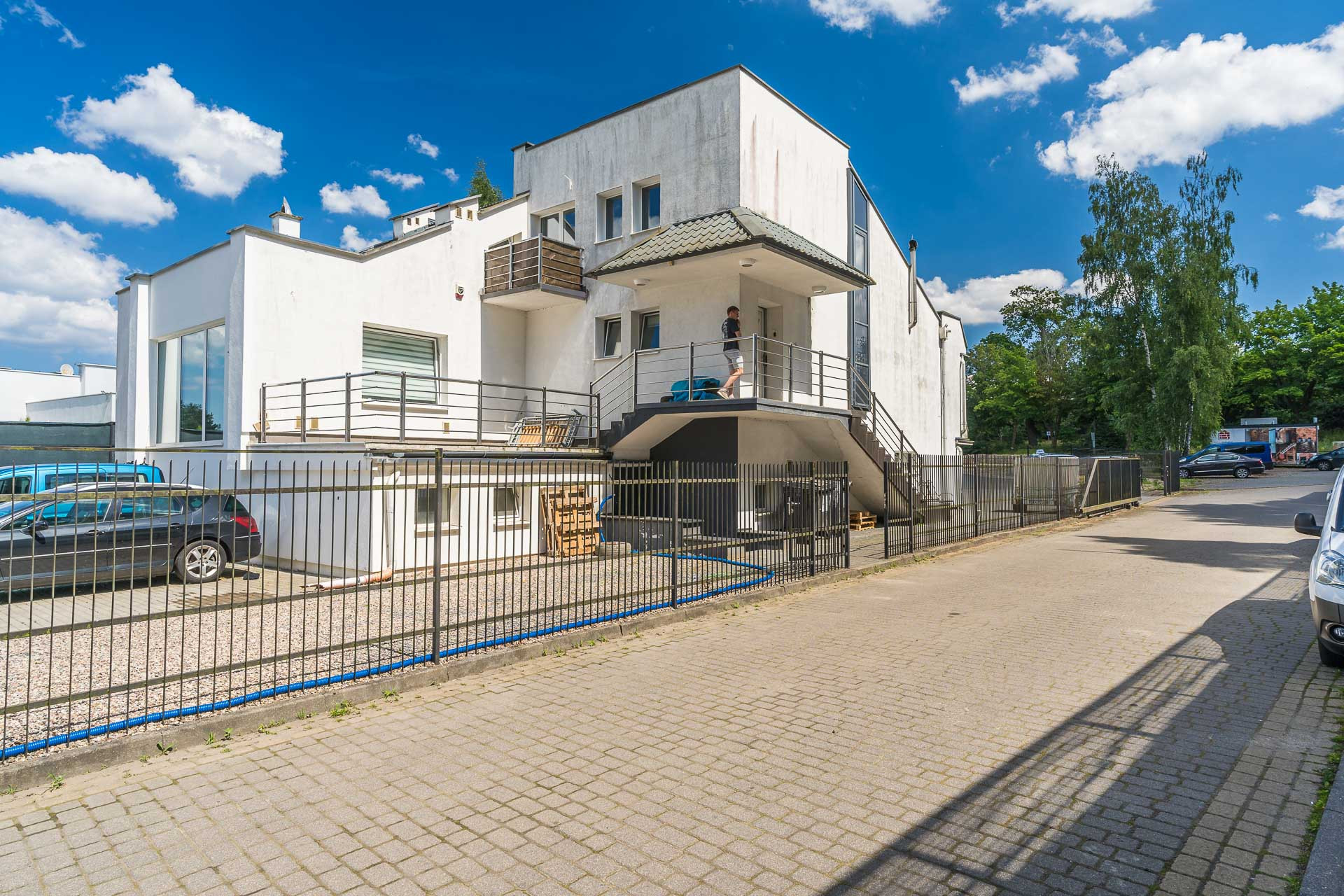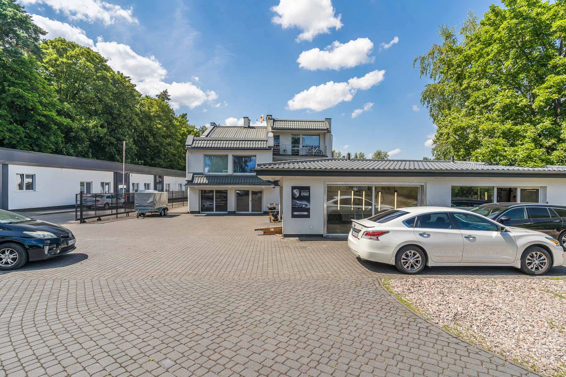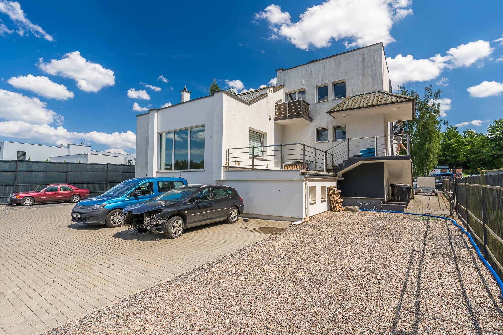 – Budynek główny: o pow. 375 m2 składa się z piwnicy oraz 3 pięter. Wybudowany w 1990 r, jest po remoncie. W środku jest 12 pomieszczeń. Podzielony na część mieszkalną i biurową. Powierzchnia biurowa zajmuje 185 m2. Do dyspozycji mamy 3 łazienki i kuchnię.