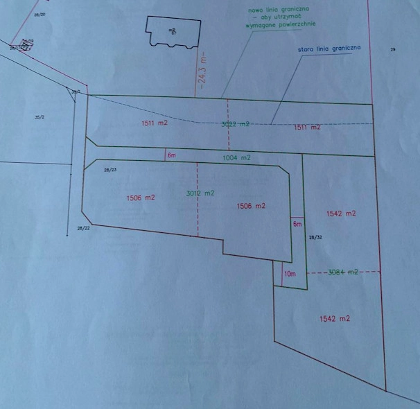 DZIAŁKA WSTĘPNIE PODZIELONA na mniejsze jednostki – podział widoczny na zdjęciach.