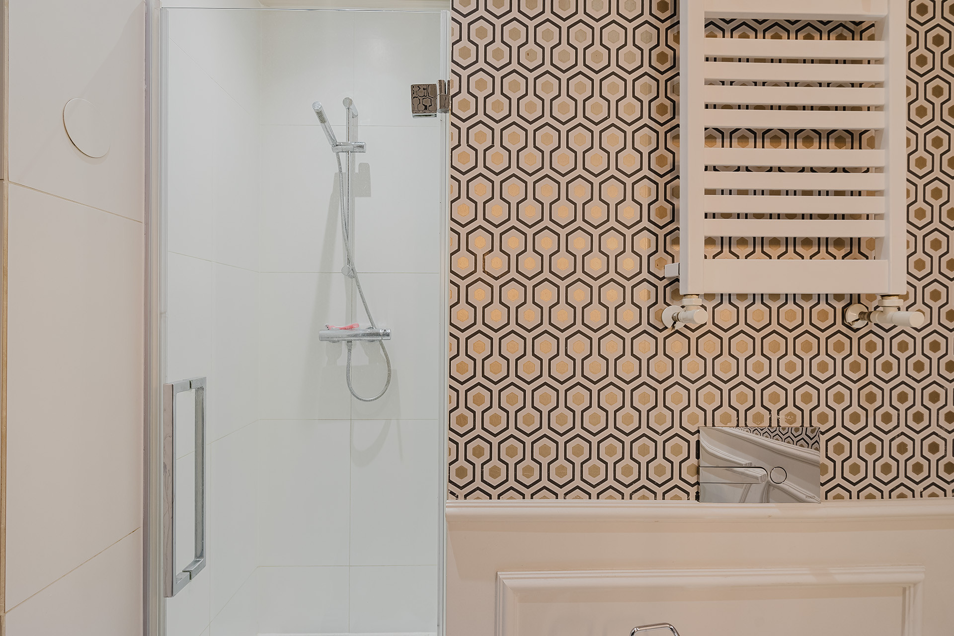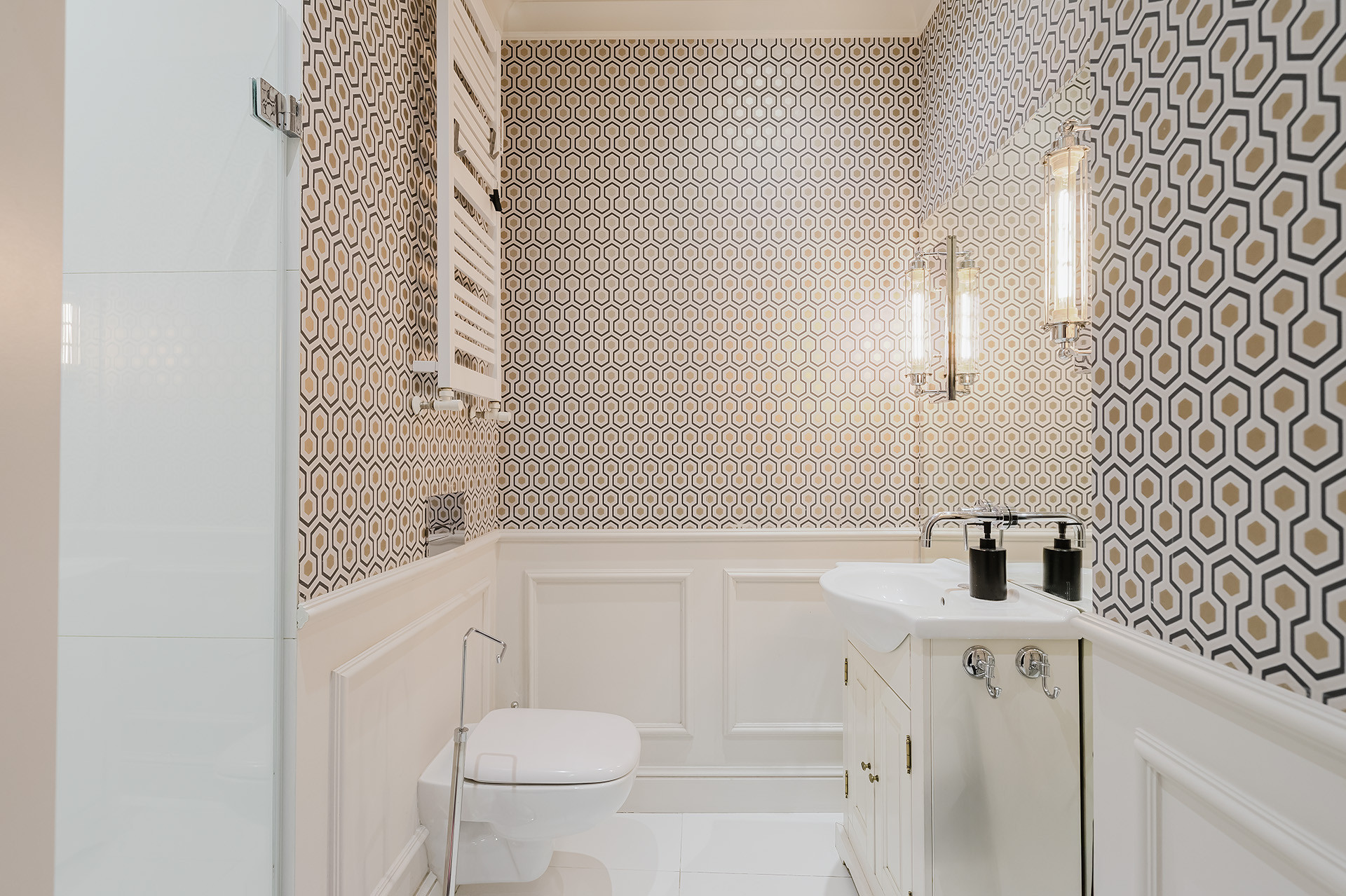 -Nowoczesna łazienka z WC i prysznicem,