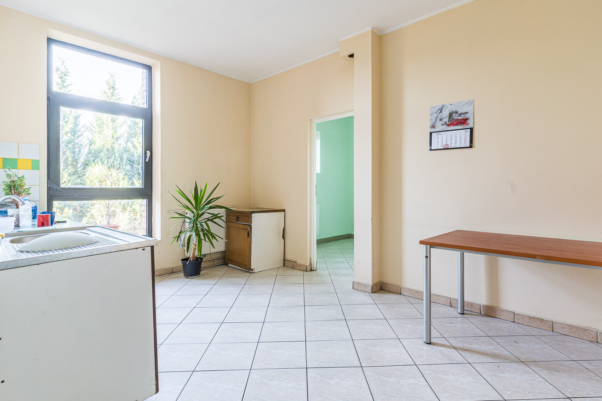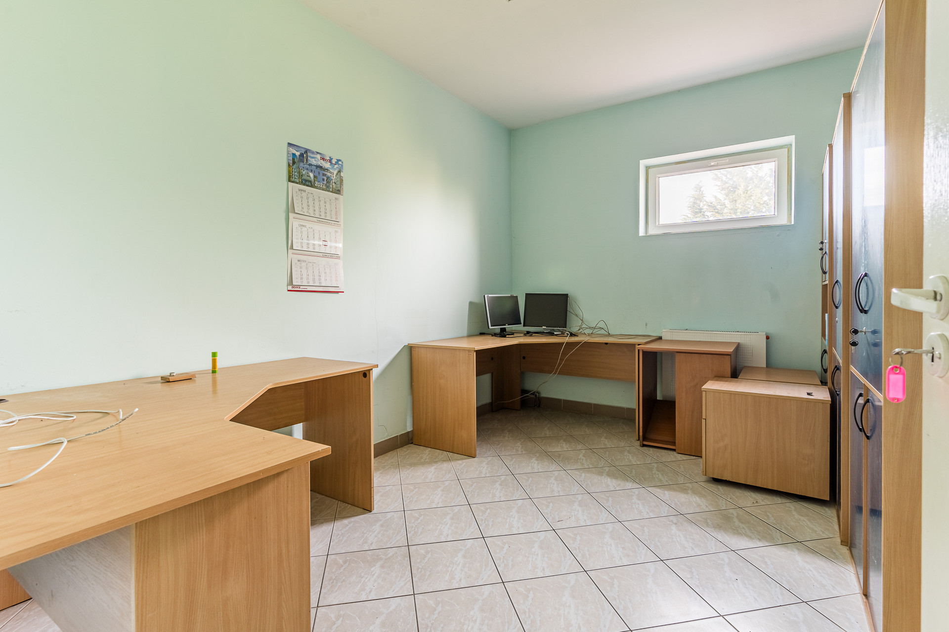 Podłoga – Kafle na posadzce betonowej, kuchnia, 3 łazienki, pomieszczenia do zagospodarowania na biura lub wg uznania. Parking przed budynkiem. Ogrzewanie olejowe.