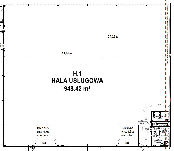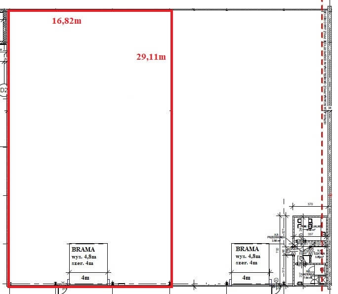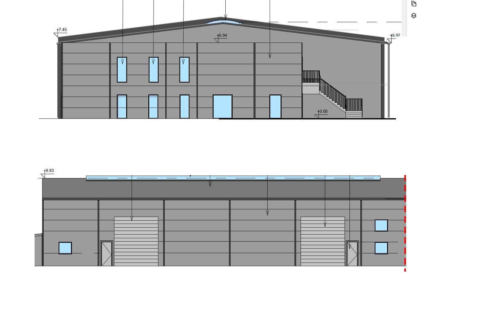 – Wysokość hali 6,94m, wysokość do dachu 8,83m
