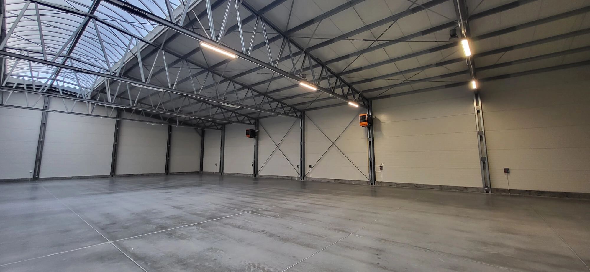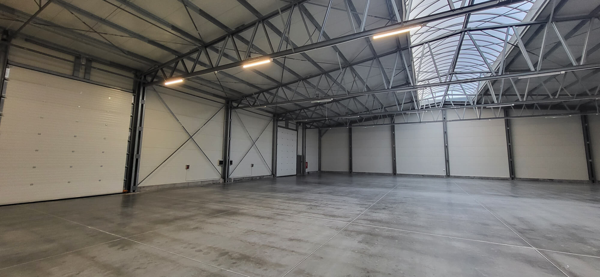 Hala z 2024r. z funkcją magazynowo – produkcyjną, ogrzewana i doświetlona światłem dziennym.