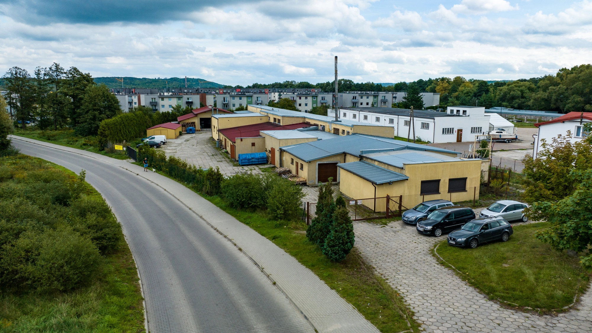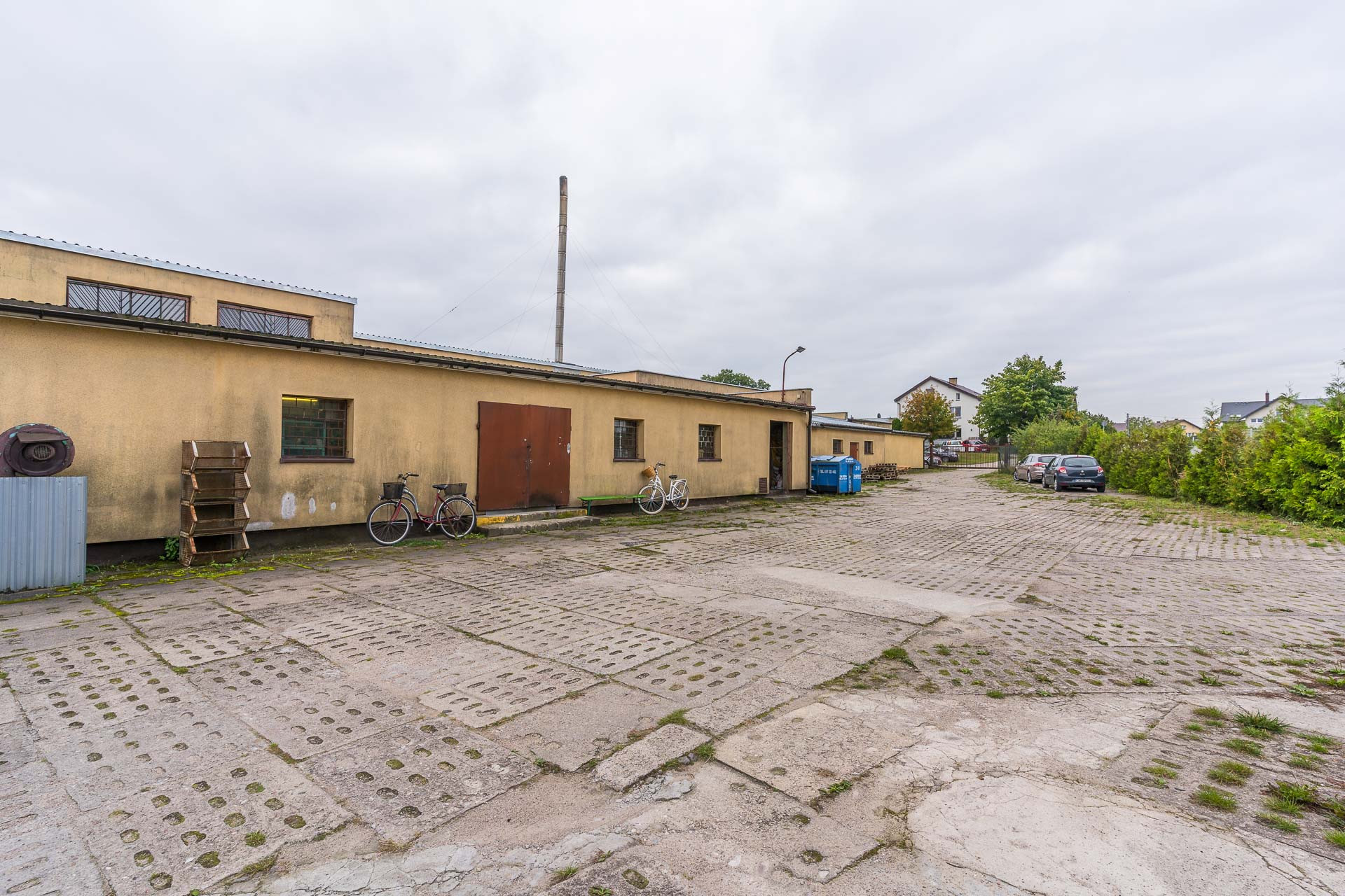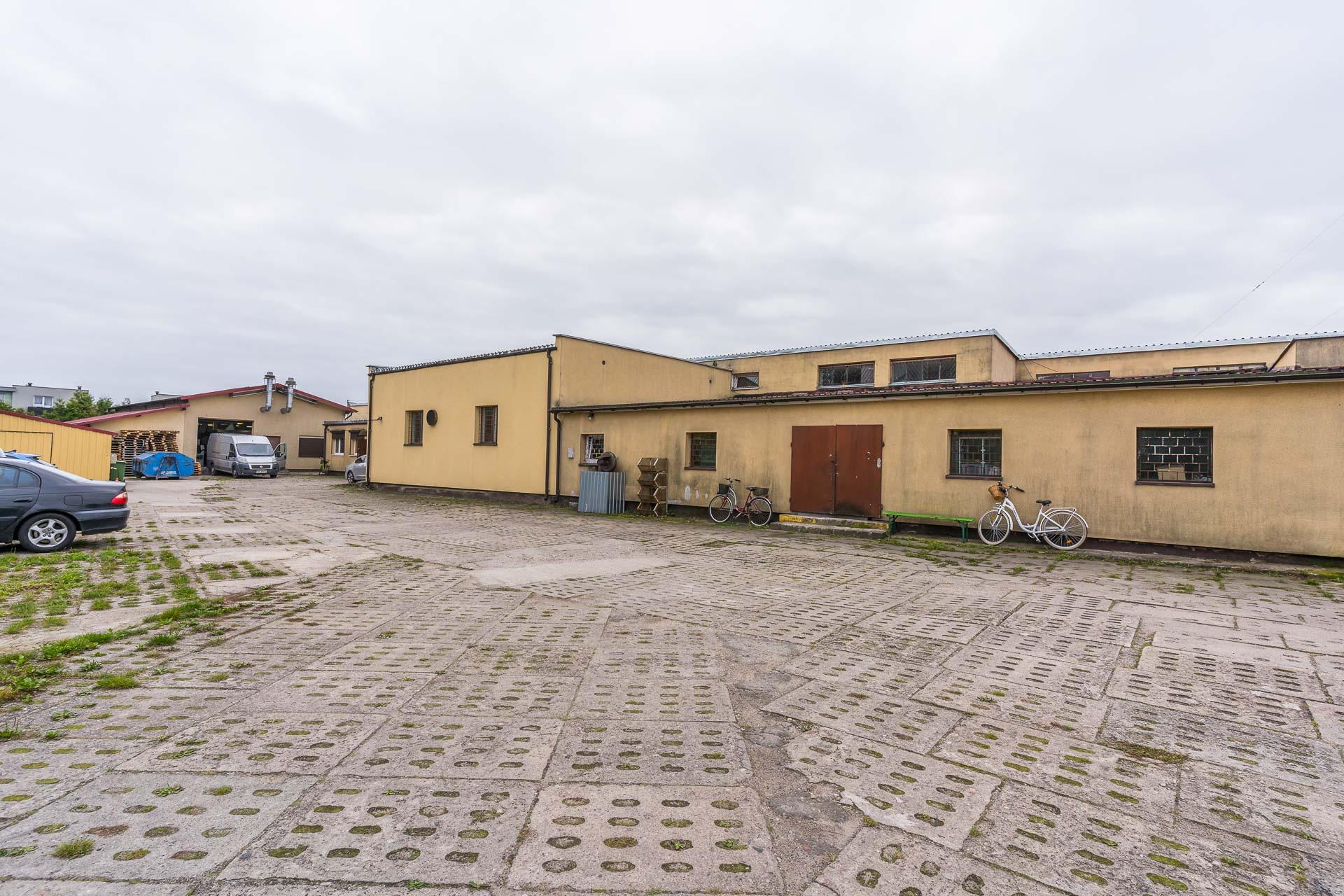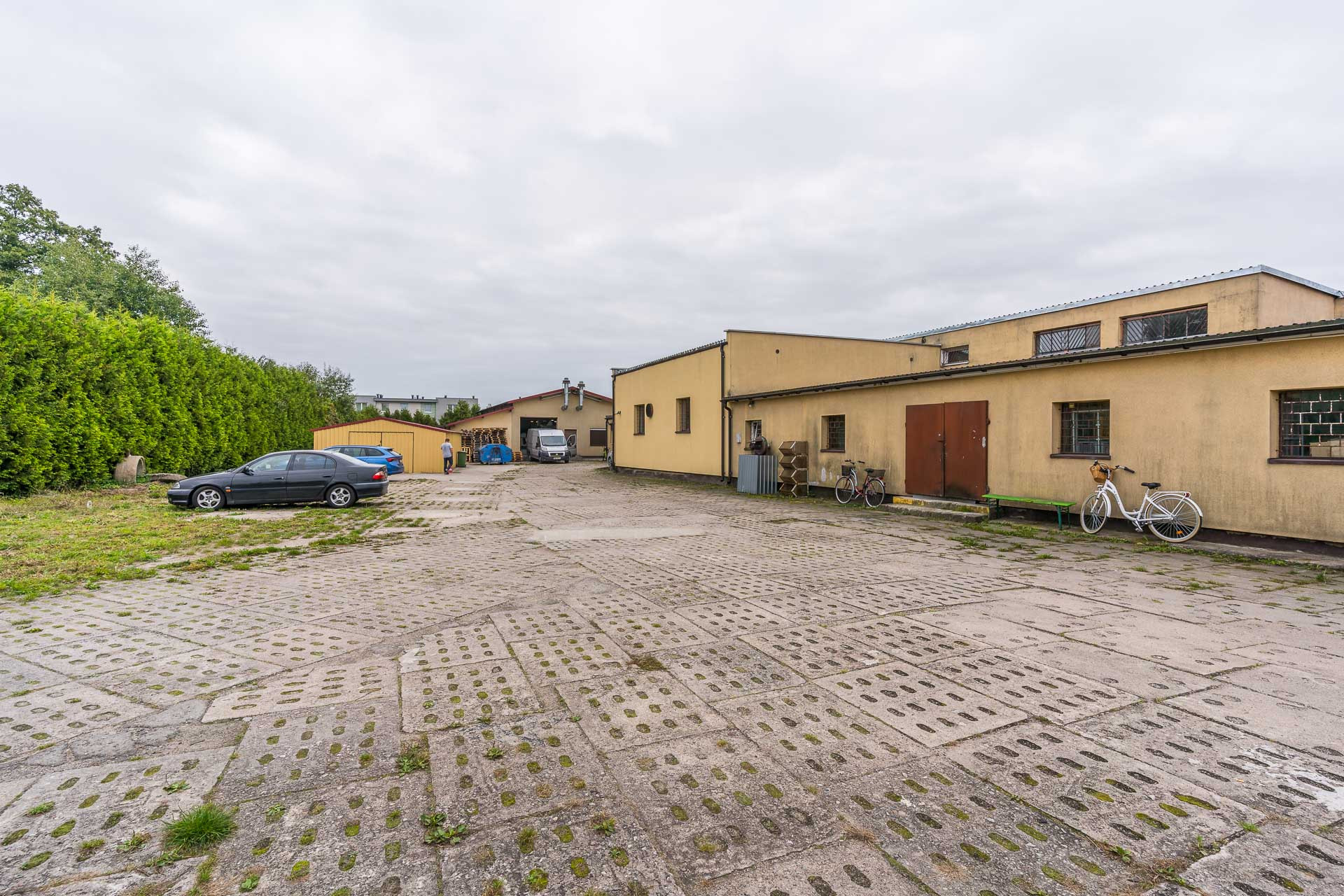 Podjazd pod budynki oraz wewnętrzny plac parkingowy jest utwardzony trylinką i płytami betonowymi.