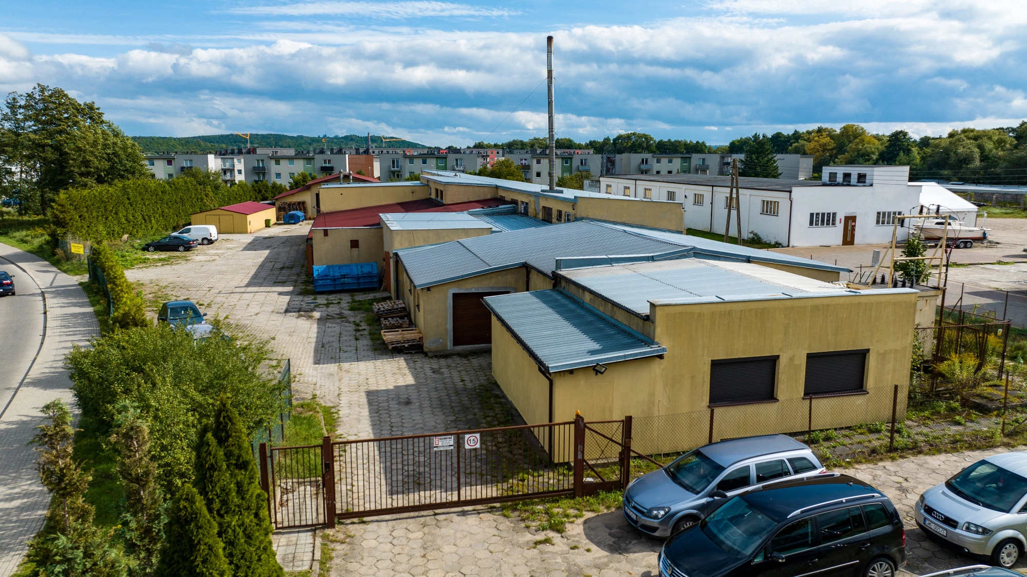 Obiekt jest w całości ogrodzony. Od strony zachodniej wjazd bramą automatyczną, sterowaną pilotem, od strony północnej brama skrzydłowa.