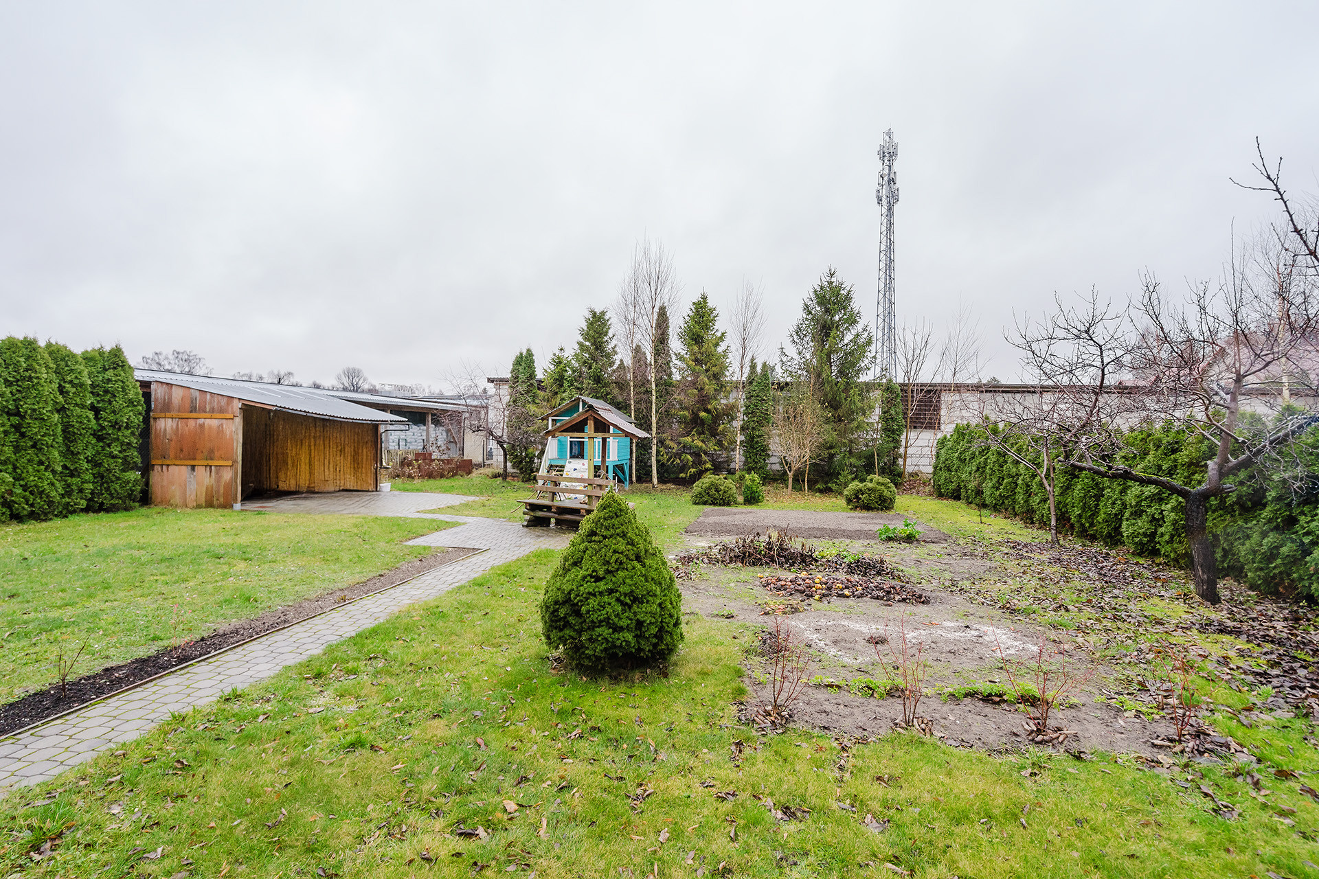 Przed budynkiem znajduję się drewniany dodatkowy garaż.