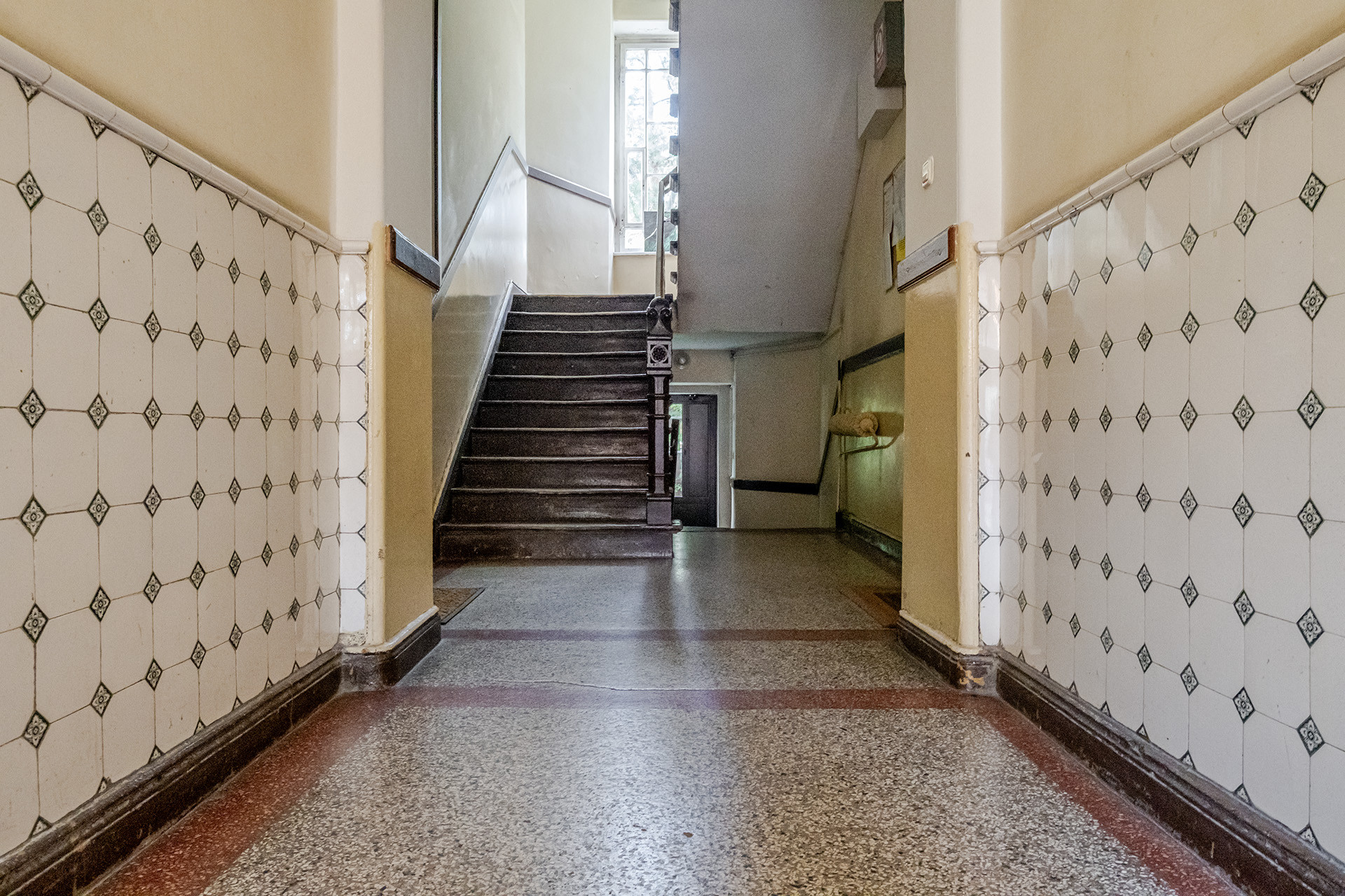 Mieszkanie mieści się na 1. piętrze w 4-piętrowej kamienicy, wzniesionej w 1900r.. Dach budynku został pokryty papą. Wejście do klatki schodowej zabezpieczone jest domofonem, a w najbliższym czasie jest planowana jej renowacja. Co więcej, planowane jest wykonanie izolacji zewnętrznej budynku.