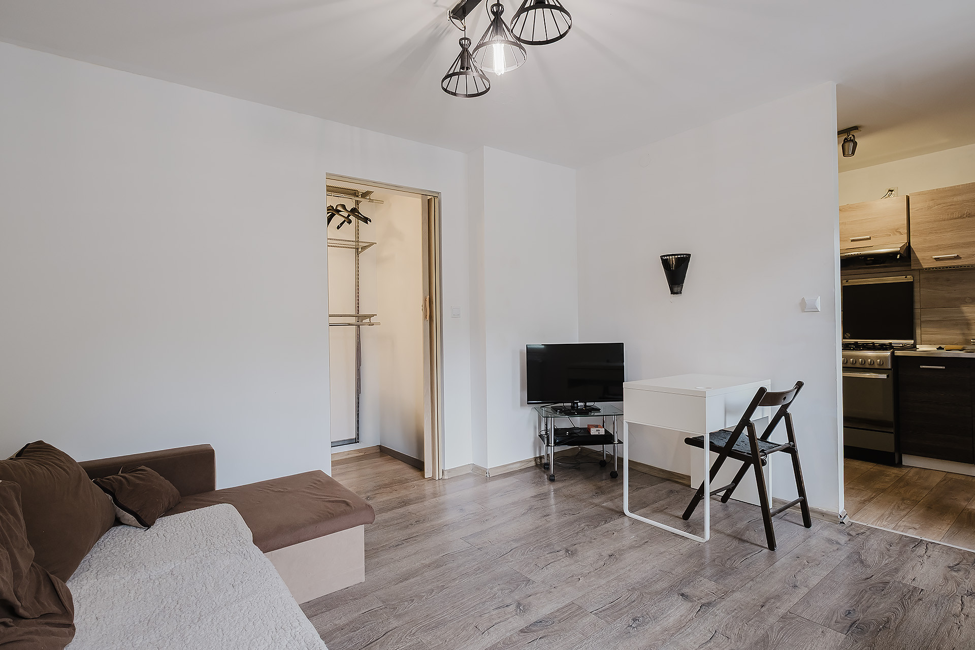 1 lokal składa się z pokoju z aneksem kuchennym oraz łazienki z prysznicem.
