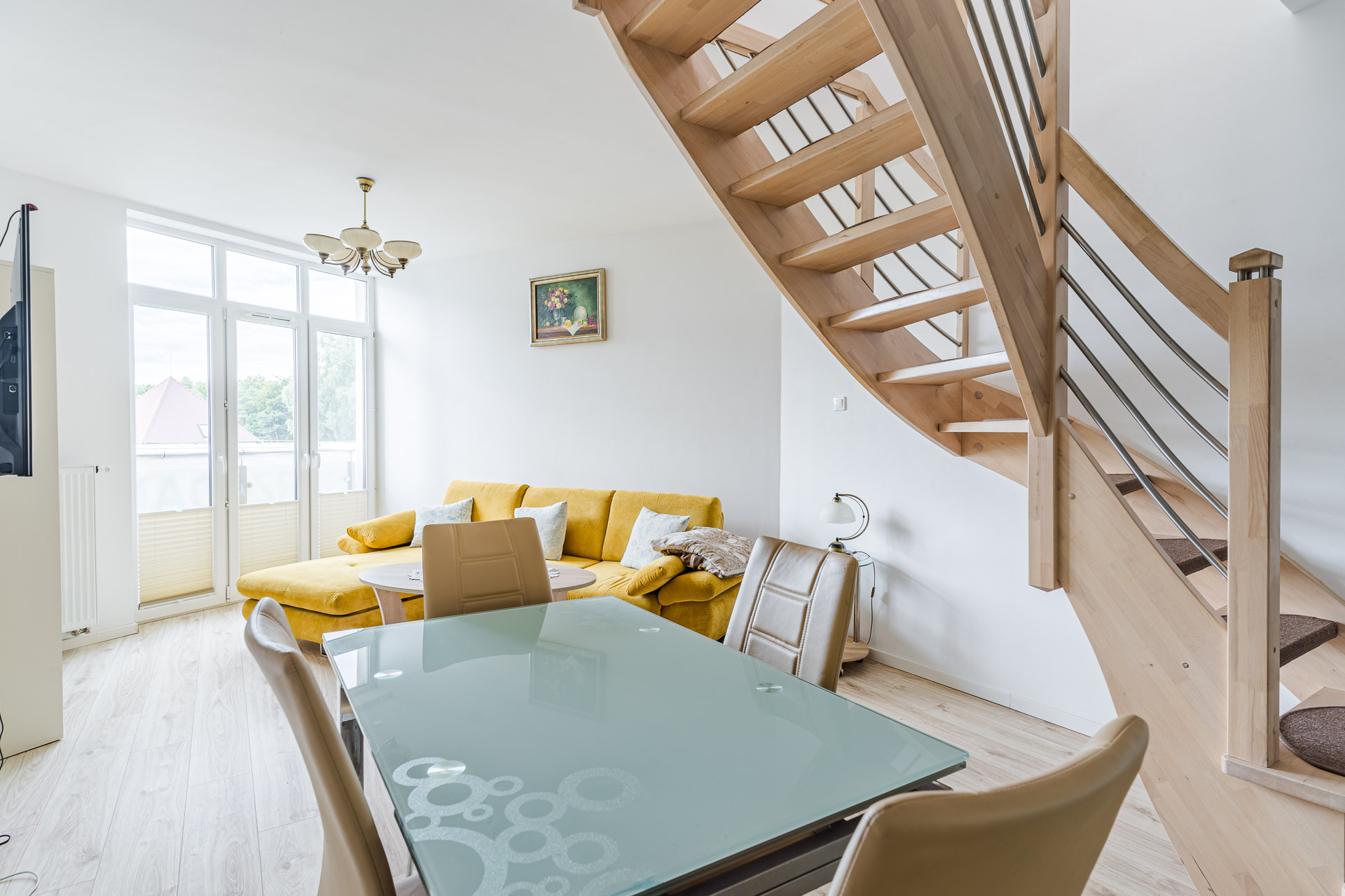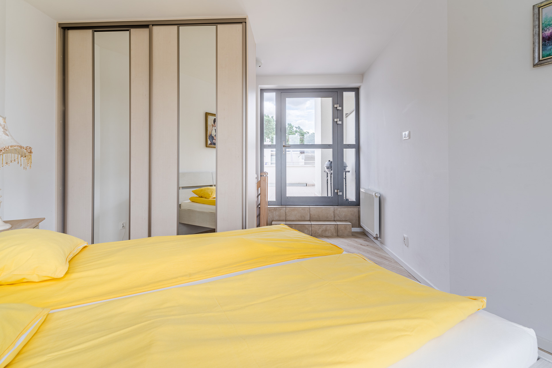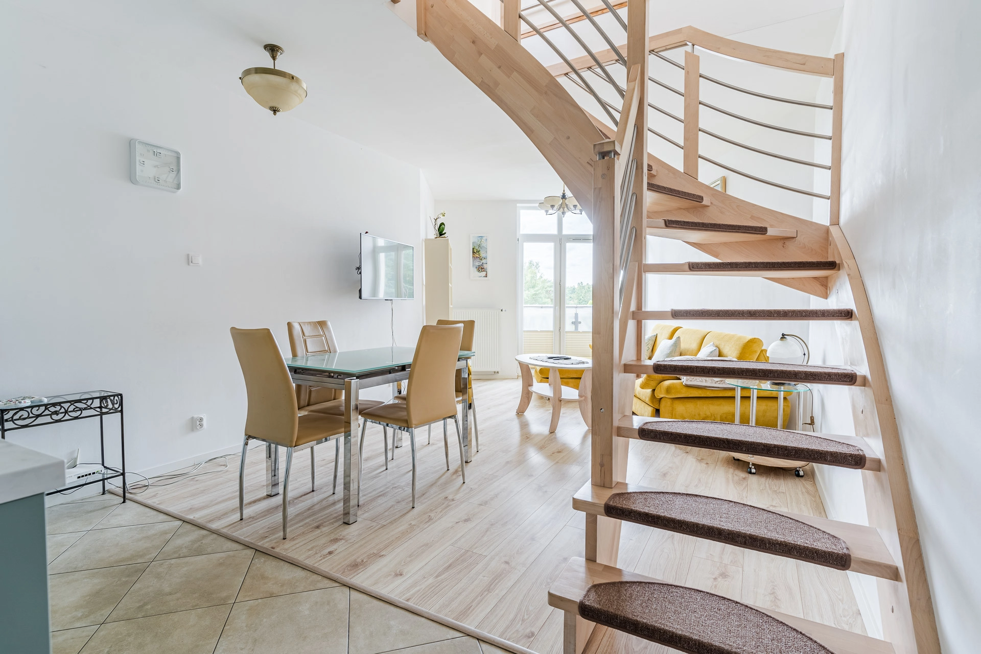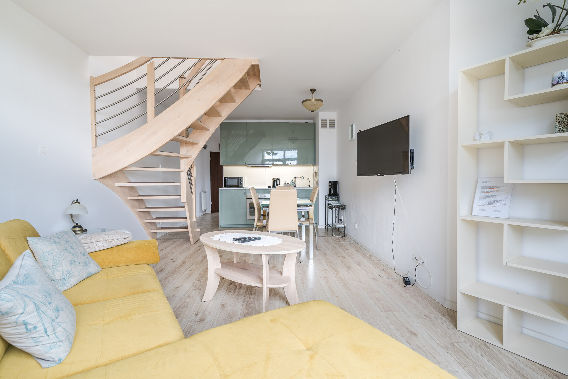Oferowany apartament to dwupoziomowa nieruchomość, zaprojektowana z dbałością o każdy detal. Na pierwszym poziomie znajduje się przestronny salon z aneksem kuchennym, sypialnia, łazienka oraz przedpokój. Drugi poziom mieści dodatkową sypialnię. Atutem mieszkania jest taras, idealny na poranną kawę lub romantyczne kolacje przy zachodzie słońca. Apartament sprzedawany jest w pełni wyposażony, co sprawia, że nadaje się zarówno do zamieszkania od razu, jak i jako gotowa inwestycja pod wynajem. Jasna ekspozycja oraz nowoczesne wnętrza zapewniają wysoki komfort użytkowania.