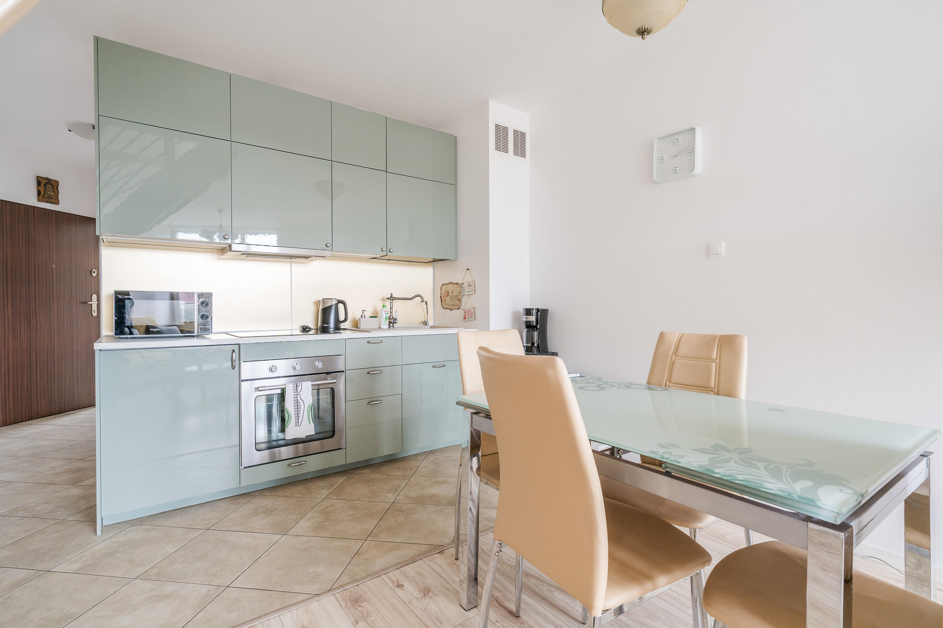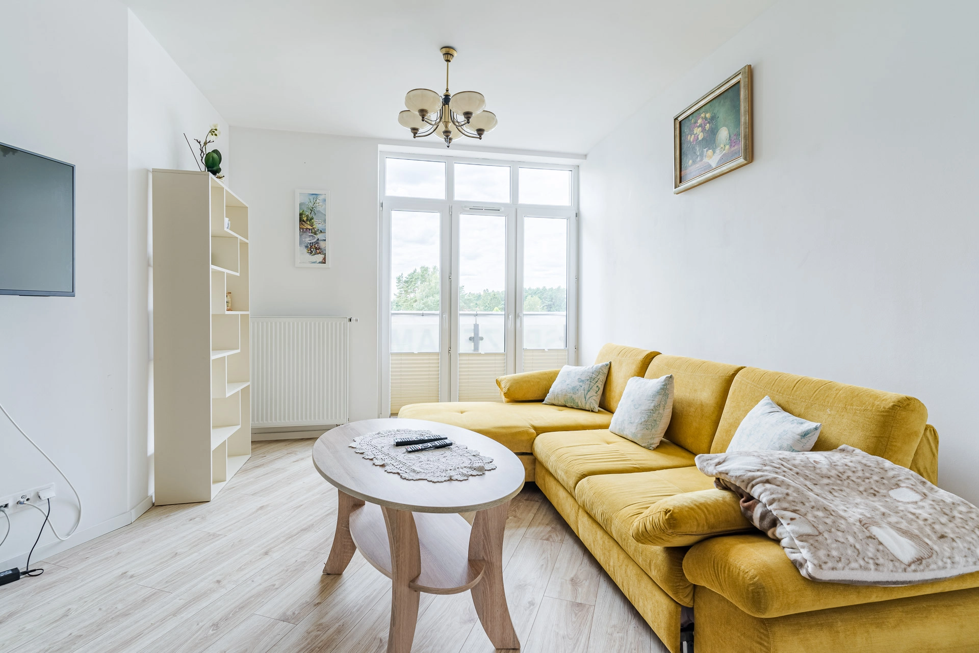Apartament znajduje się w nowoczesnym, kameralnym budynku na zamkniętym i bezpiecznym osiedlu. Dla mieszkańców przewidziano m.in. taras na dachu, z którego rozciąga się widok na okolicę, stanowiący doskonałe miejsce do relaksu i spotkań z przyjaciółmi. Wokół osiedla rozciągają się tereny zielone i lasy, a bliskość morza sprawia, że jest to idealne miejsce zarówno do zamieszkania na stałe, jak i pod inwestycję w najem krótkoterminowy.