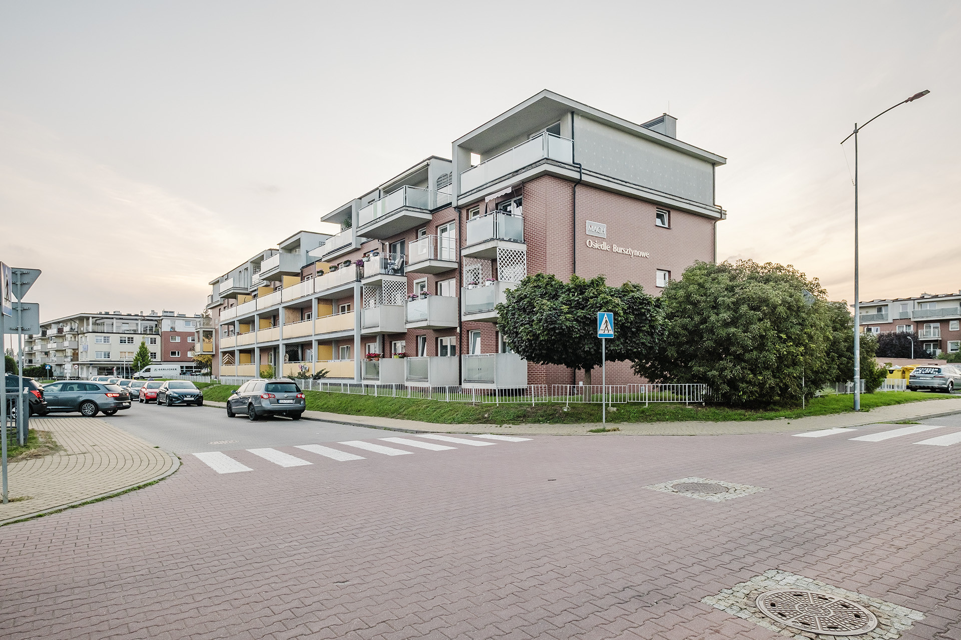Nieruchomość mieści się w kameralnym, trzypiętrowym budynku z 2008 roku, zlokalizowanym na zadbanym Osiedlu Bursztynowym. Wejście do klatki schodowej zabezpieczone jest domofonem, a sama klatka jest szeroka, czysta i utrzymana w bardzo dobrym stanie. W otoczeniu niska zabudowa wielorodzinna.