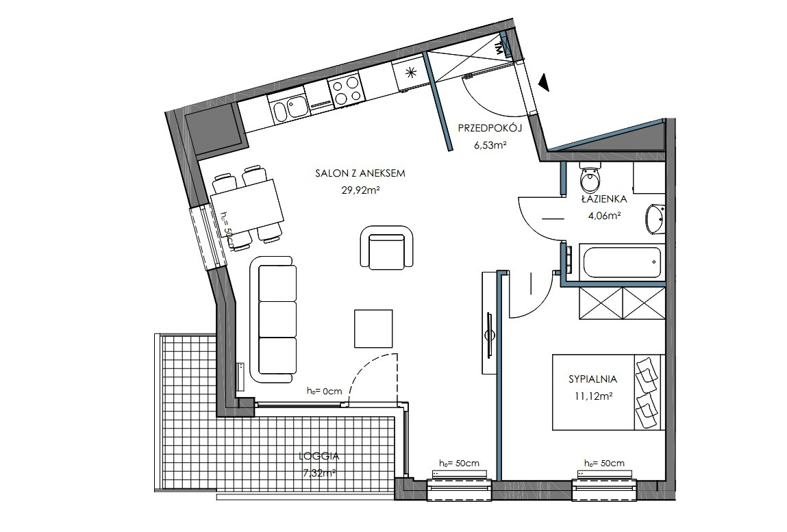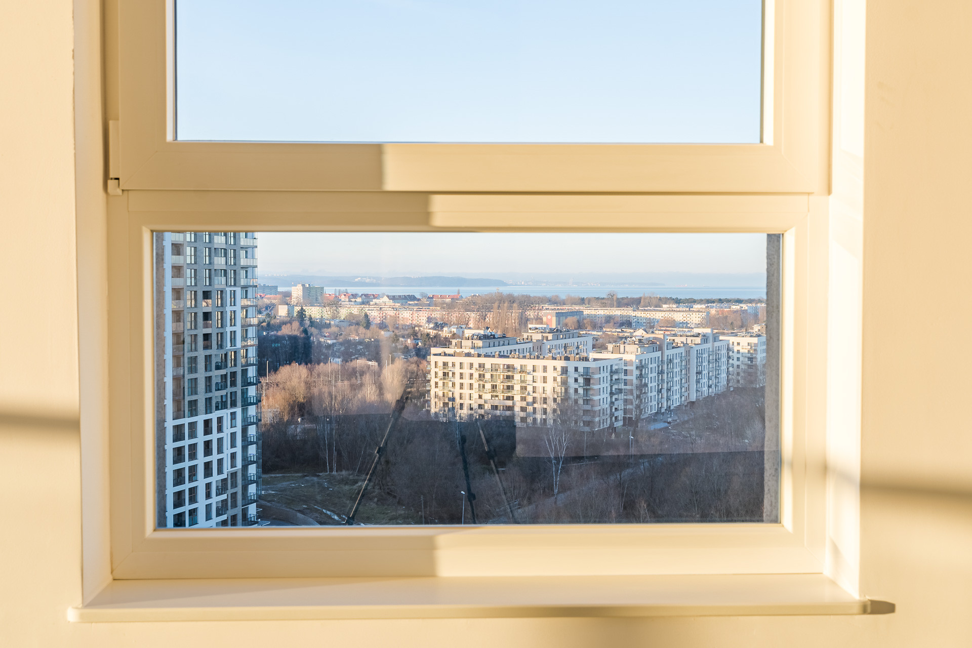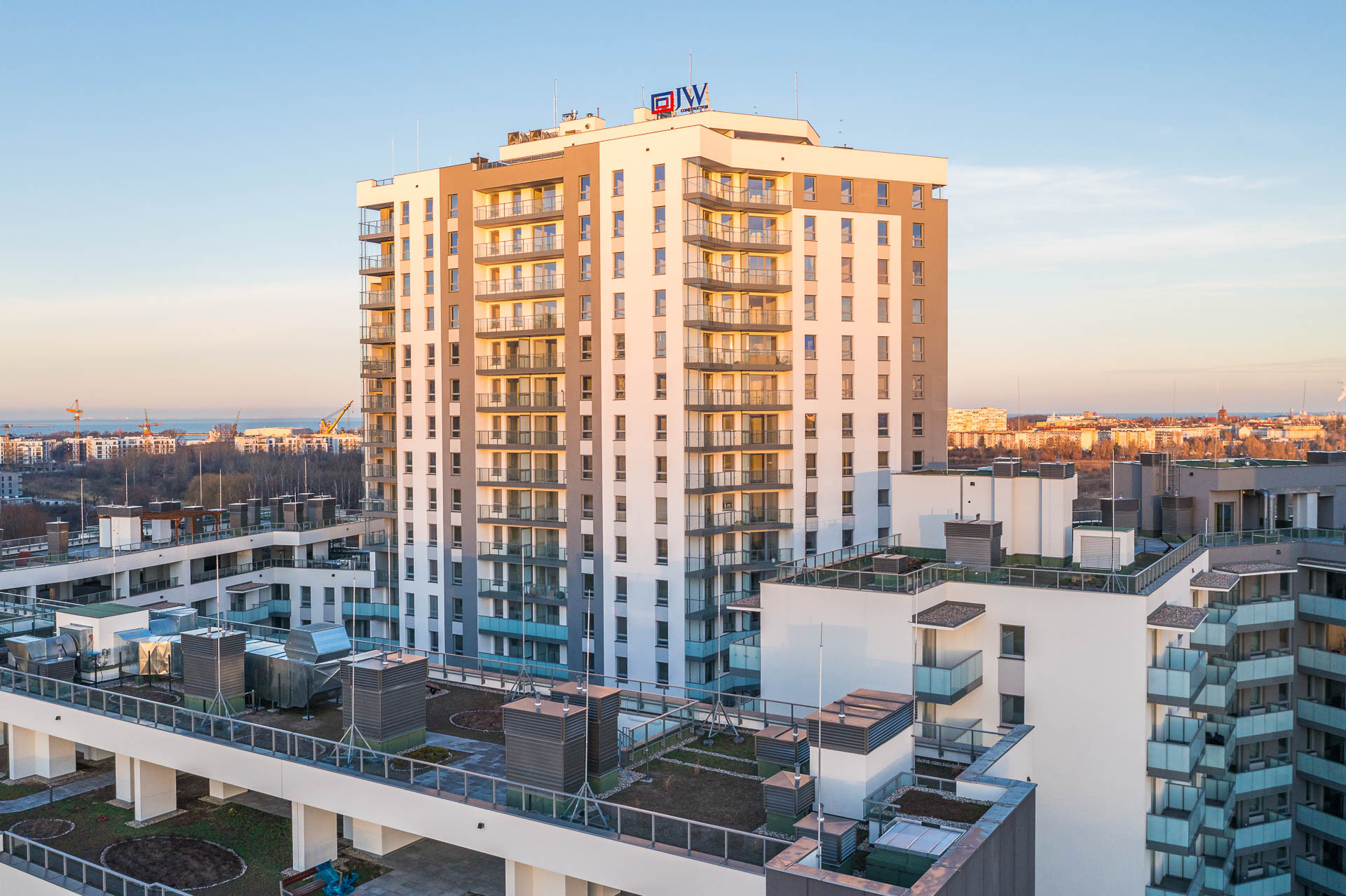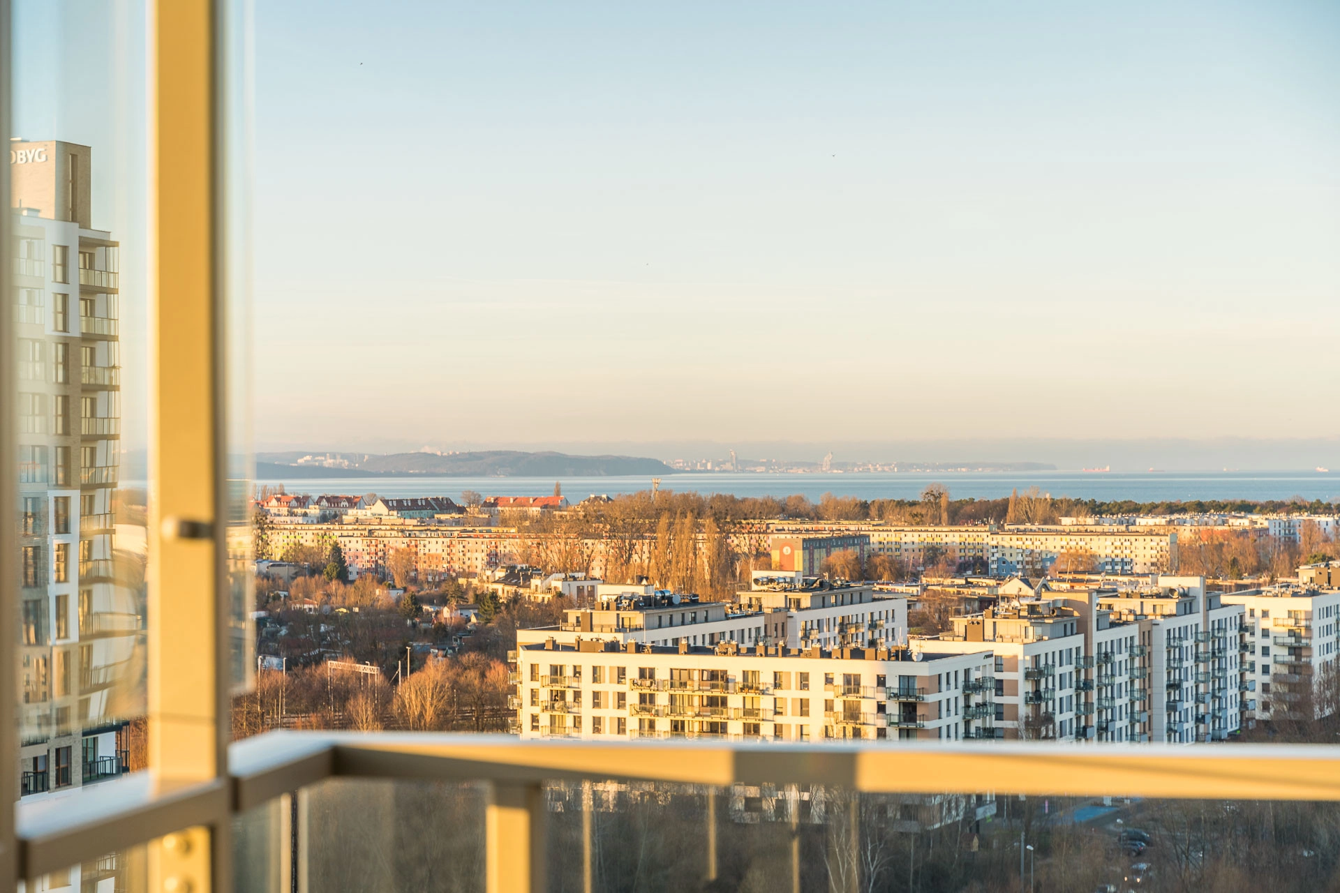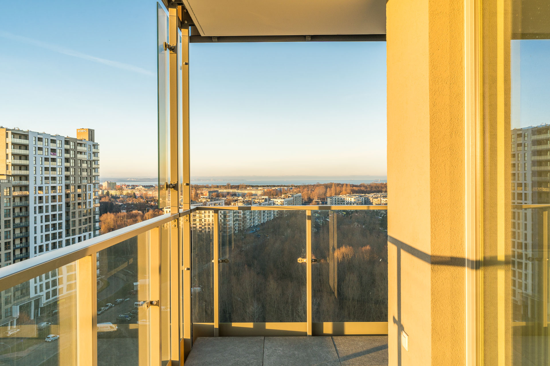 2 pokojowe o powierzchni 51,63 m2 z dużą narożną loggia o powierzchni 7,32 m2 składające się z pokoju dziennego z aneksem kuchennym, sypialni, łazienki i przedpokoju. Mieszkanie jest narożne z pięknym, niezakłóconym widokiem na morze, oraz stadion Polsat Plus Arena.