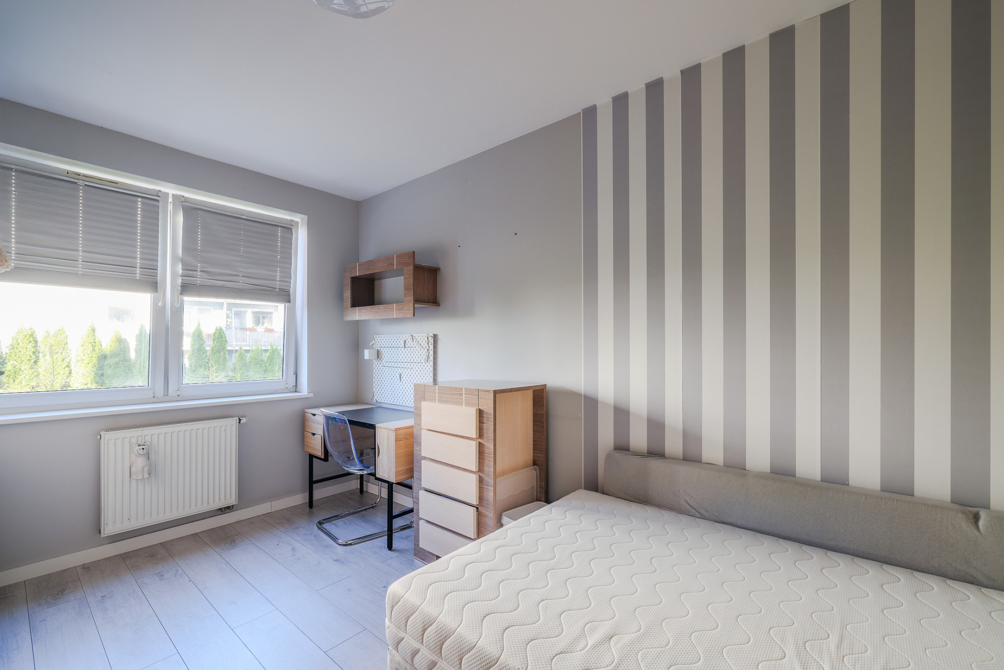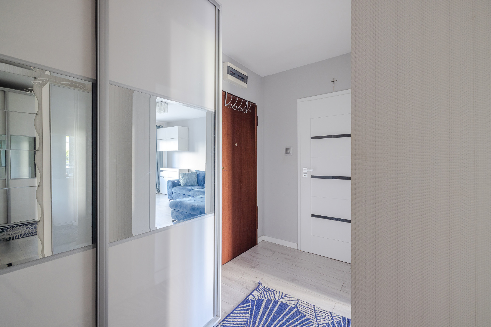 Ogromny atutem nieruchomości jest wysoki poziom intymności w mieszkaniu. Lokal bardzo słoneczny dzięki zachodniej ekspozycji. Bliskość terenów zielonych pozwalają mieszkańcom na efektywny wypocząć oraz aktywnie spędzać czas wolny. Duża ilości okien sprawia, ze nieruchomość jest świetnie doświetlona, jasna i ciepła. Na podłodze w całym mieszkaniu panele oraz kafle