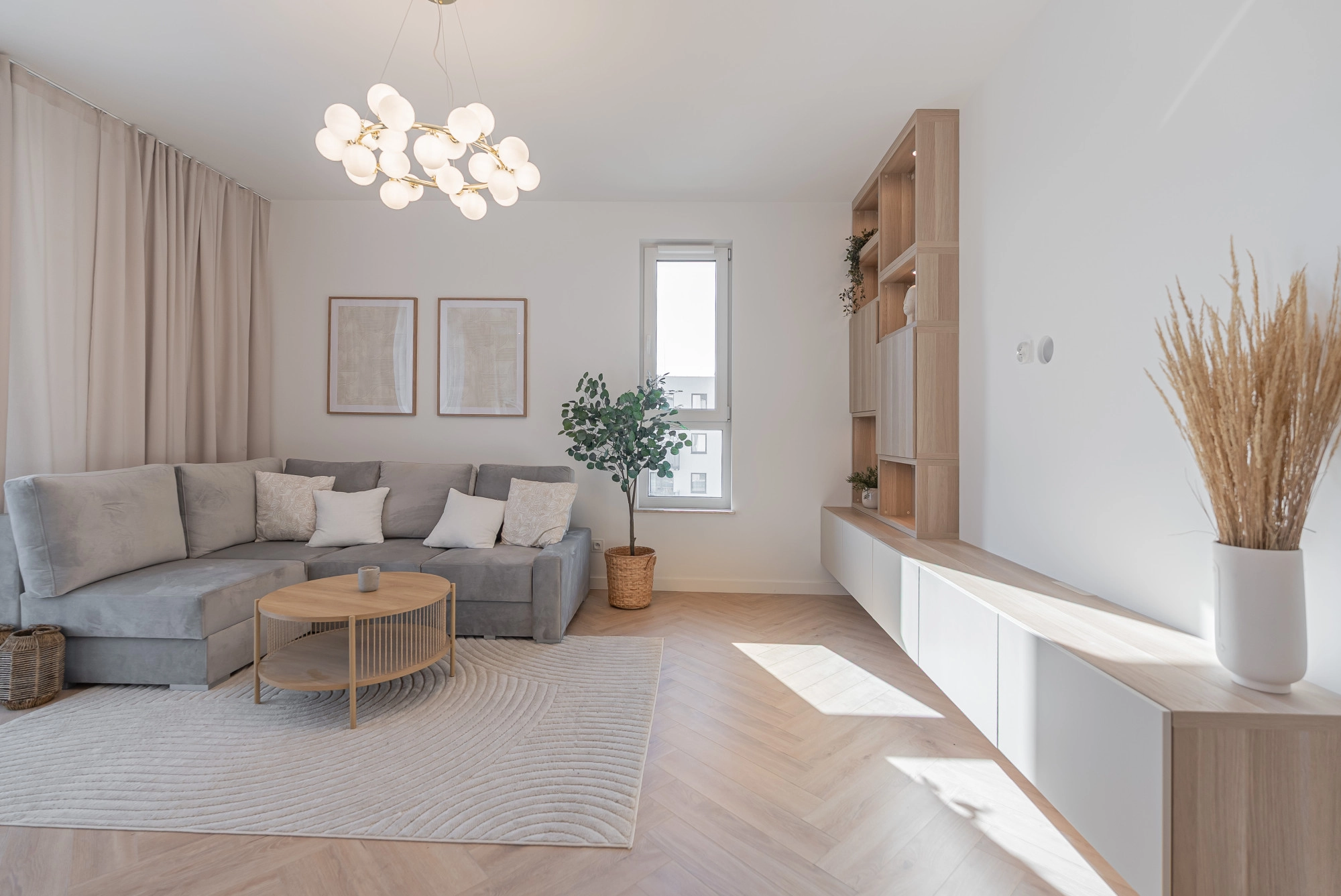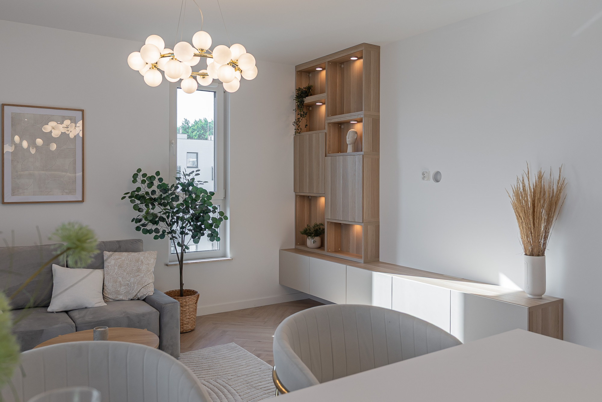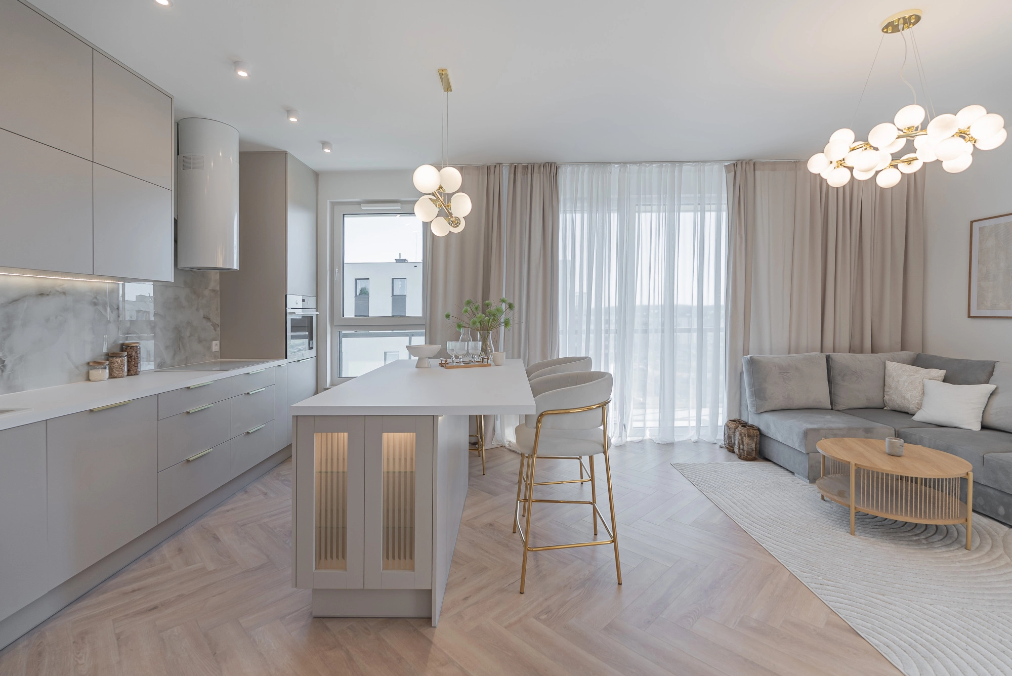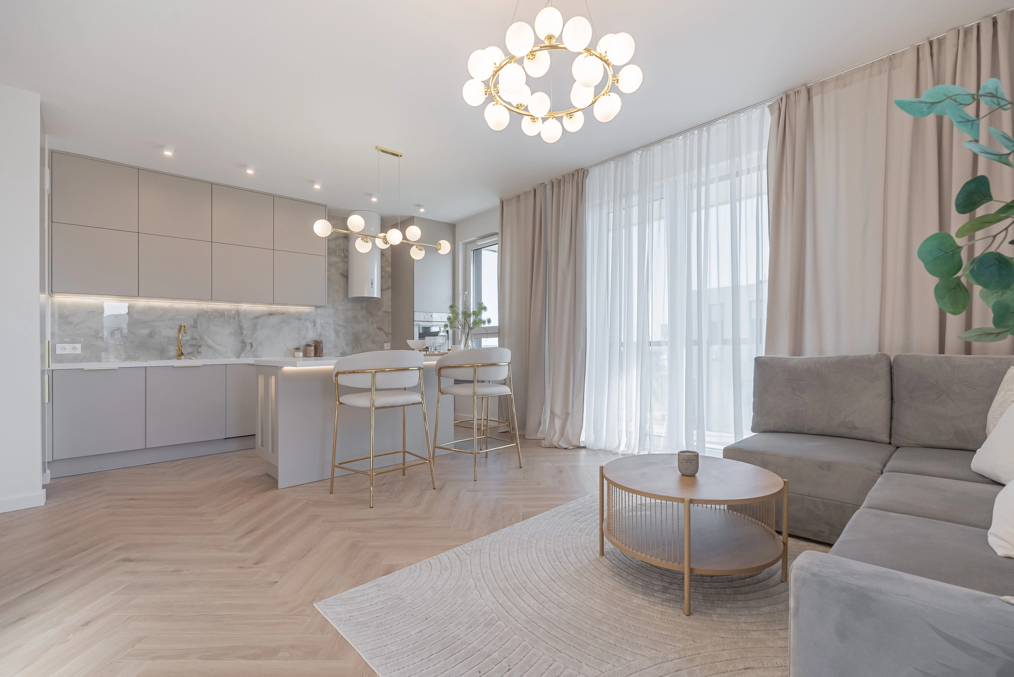 Nowoczesne, 3-pokojowe mieszkanie o powierzchni 68 m², zaprojektowane przez architekta i objęte gwarancją deweloperską. Położone na 2. piętrze czteropiętrowego budynku z windą, z funkcjonalnym rozkładem pomieszczeń. Kuchnia została wyposażona w objęty gwarancjami nowy sprzęt AGD renomowanych marek, a całość uzupełnia nastrojowe oświetlenie – w tym LED-y sterowane pilotem. W przestronnym salonie znajduje się rozkładana sofa, stolik kawowy oraz pojemna komoda RTV. Mieszkanie wykończone z dbałością o detale i gotowe do wprowadzenia.