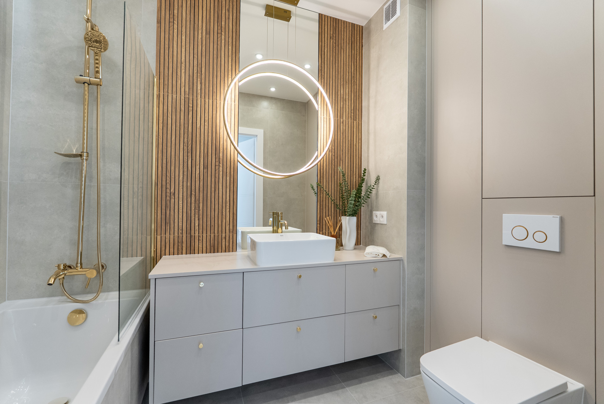 – łazienka wyposażona w wannę z funkcją prysznica,