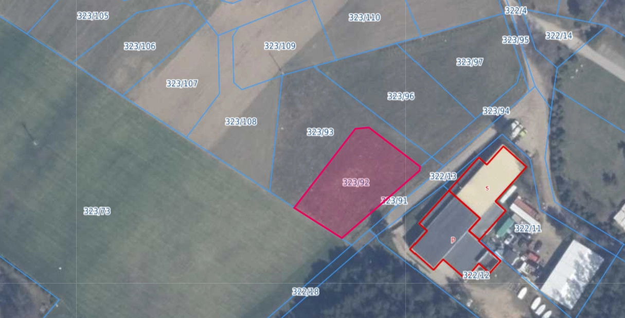 Działka o powierzchni 1.195 m2 o numerze ewidencyjnym 323/92, płaska, w kształcie zbliżonym do prostokąta. Dojazd do działki drogą gruntową (gminną), a wcześniej asfaltową. Porośnięta roślinnością trawiastą, nie ma konieczności karczowana drzew.