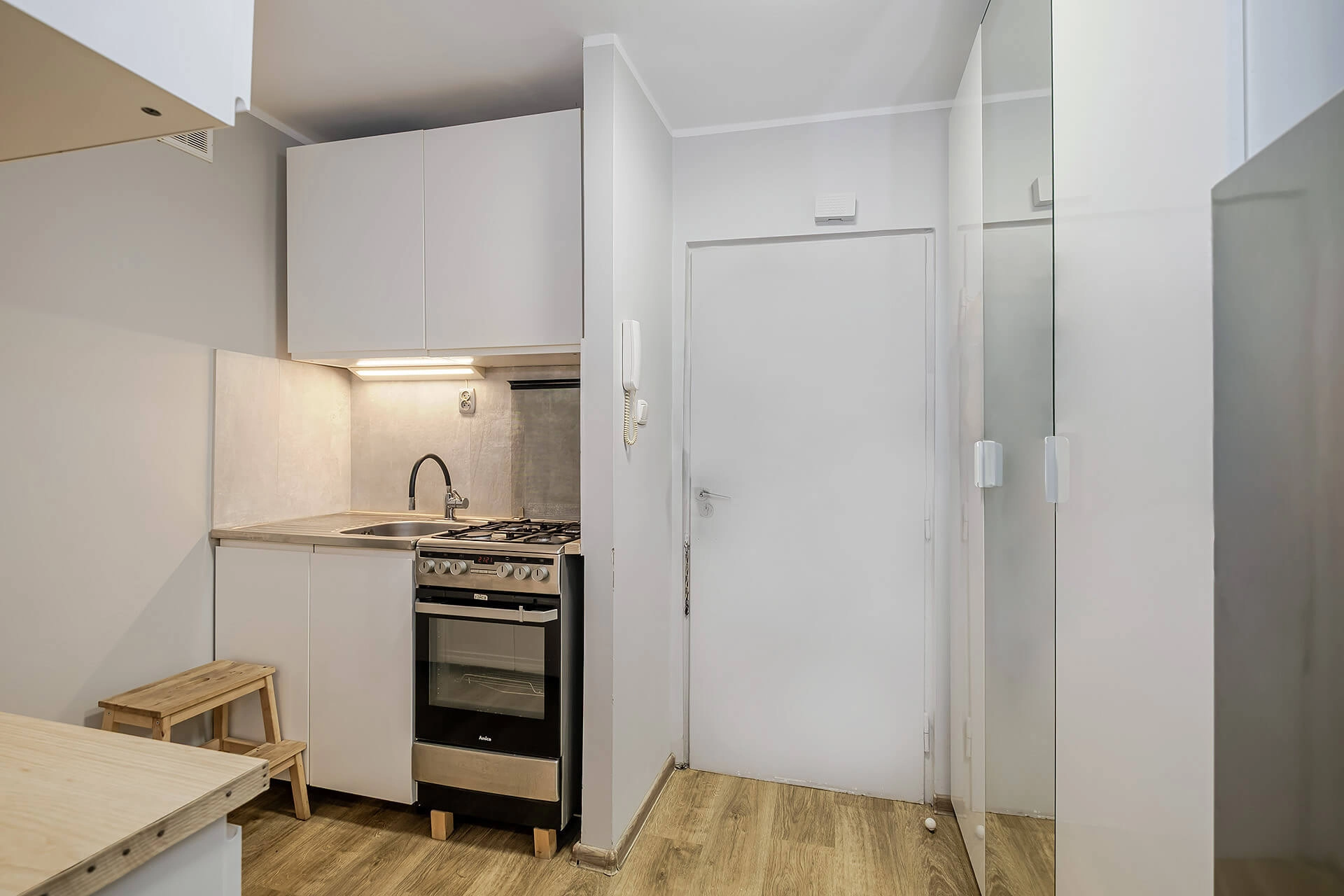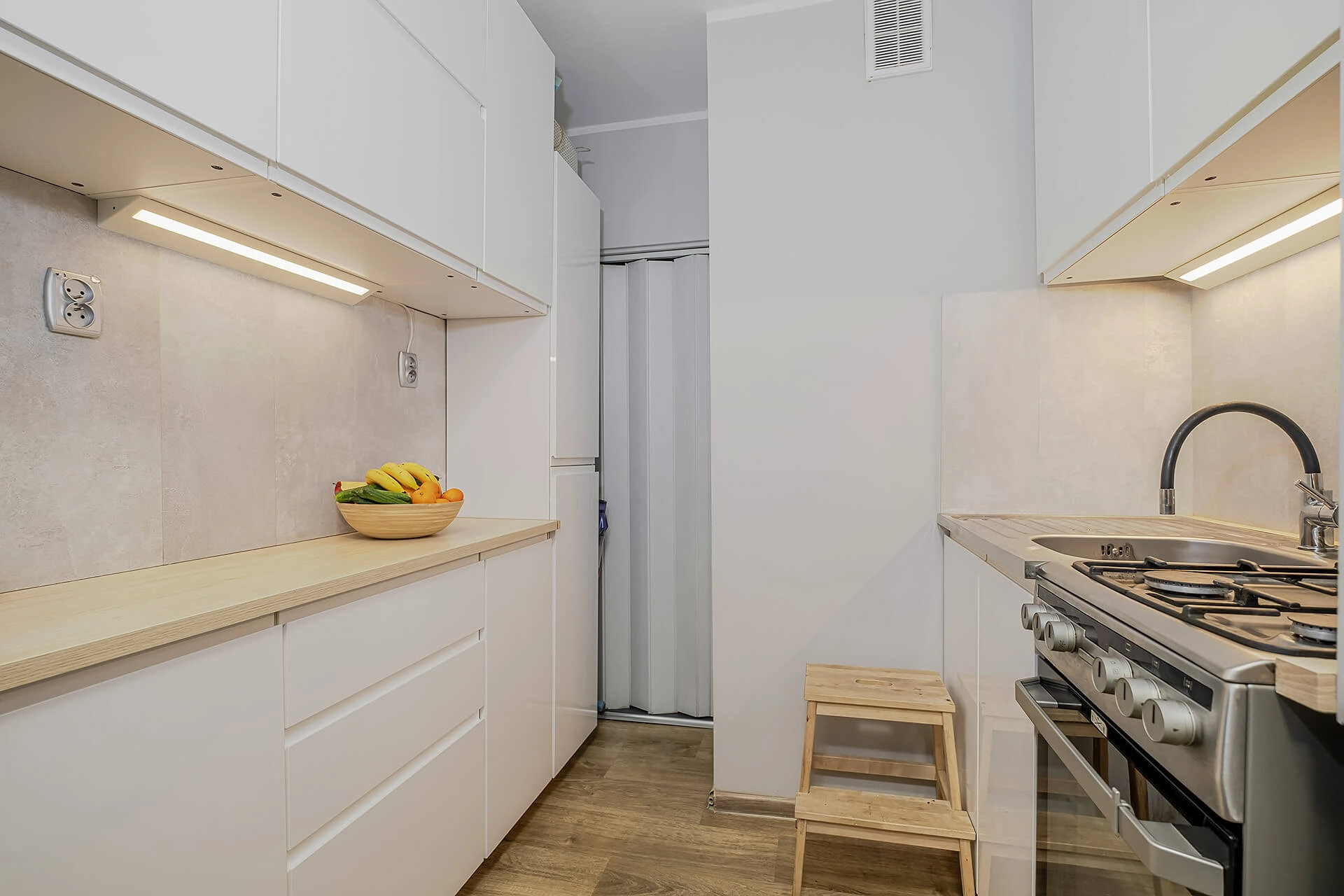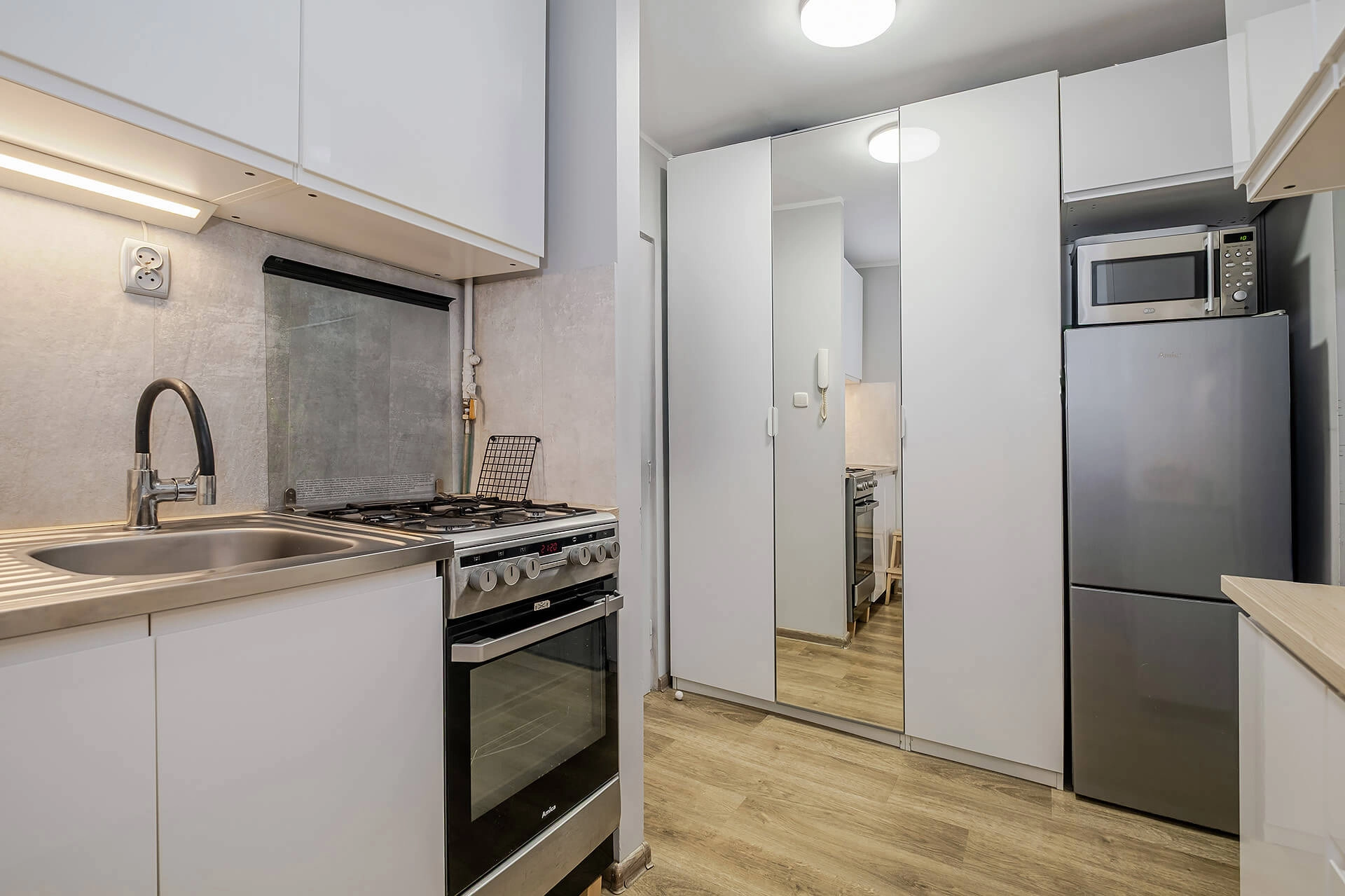Mieszkanie po remoncie. Kuchnia z frezowanymi lakierowanymi frontami została wymieniona w 2022.