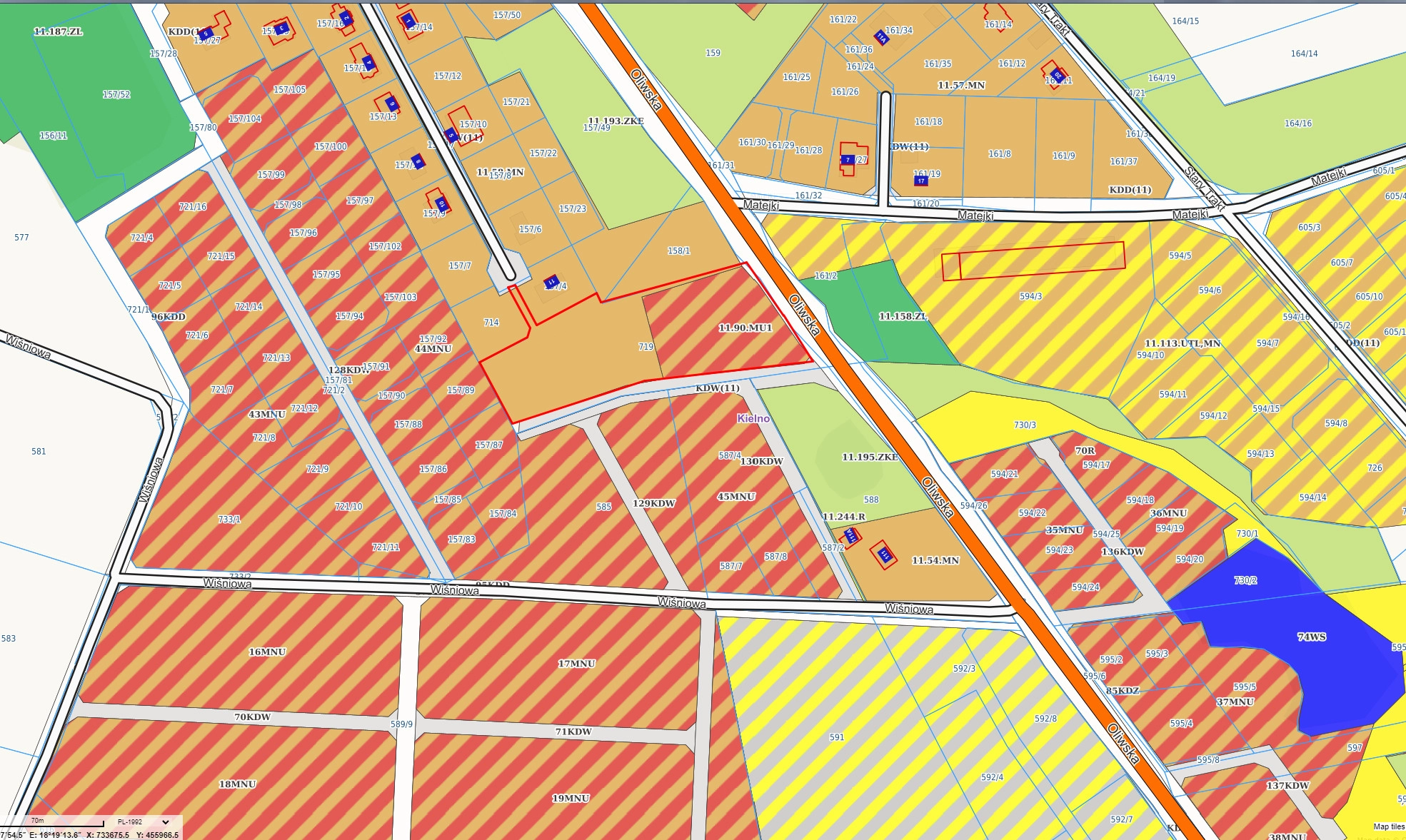 Ok 60% działki jest pod planem 11.58.MN a pozostała część pod 11.90.MU1