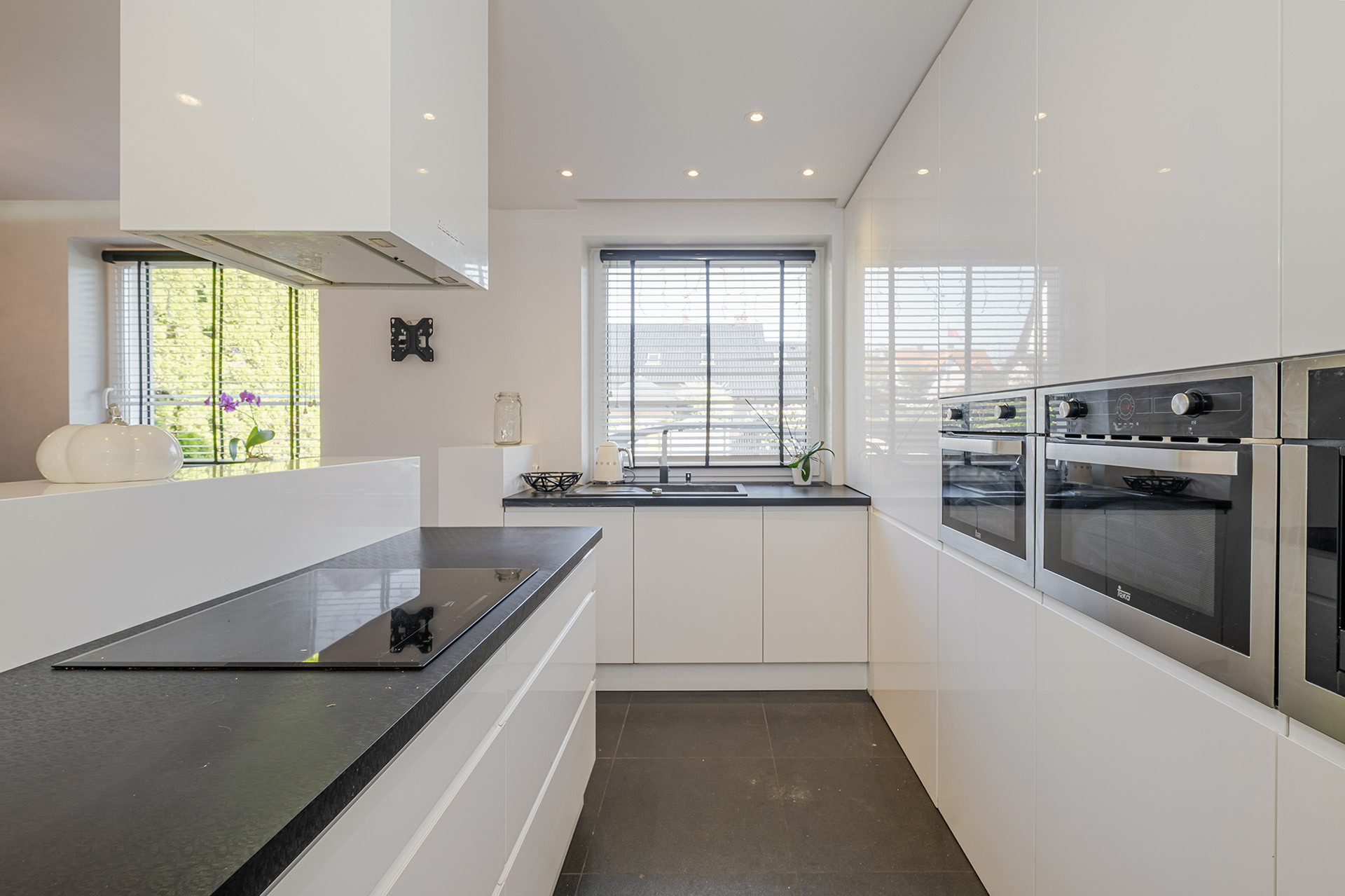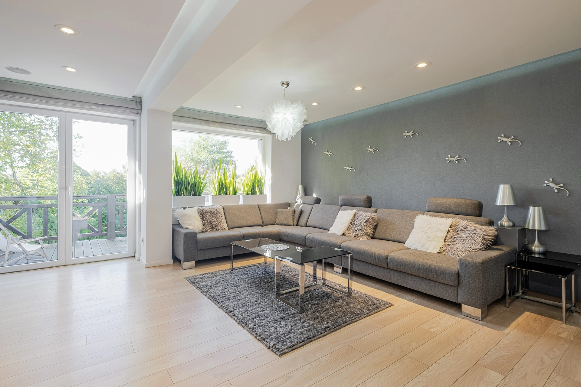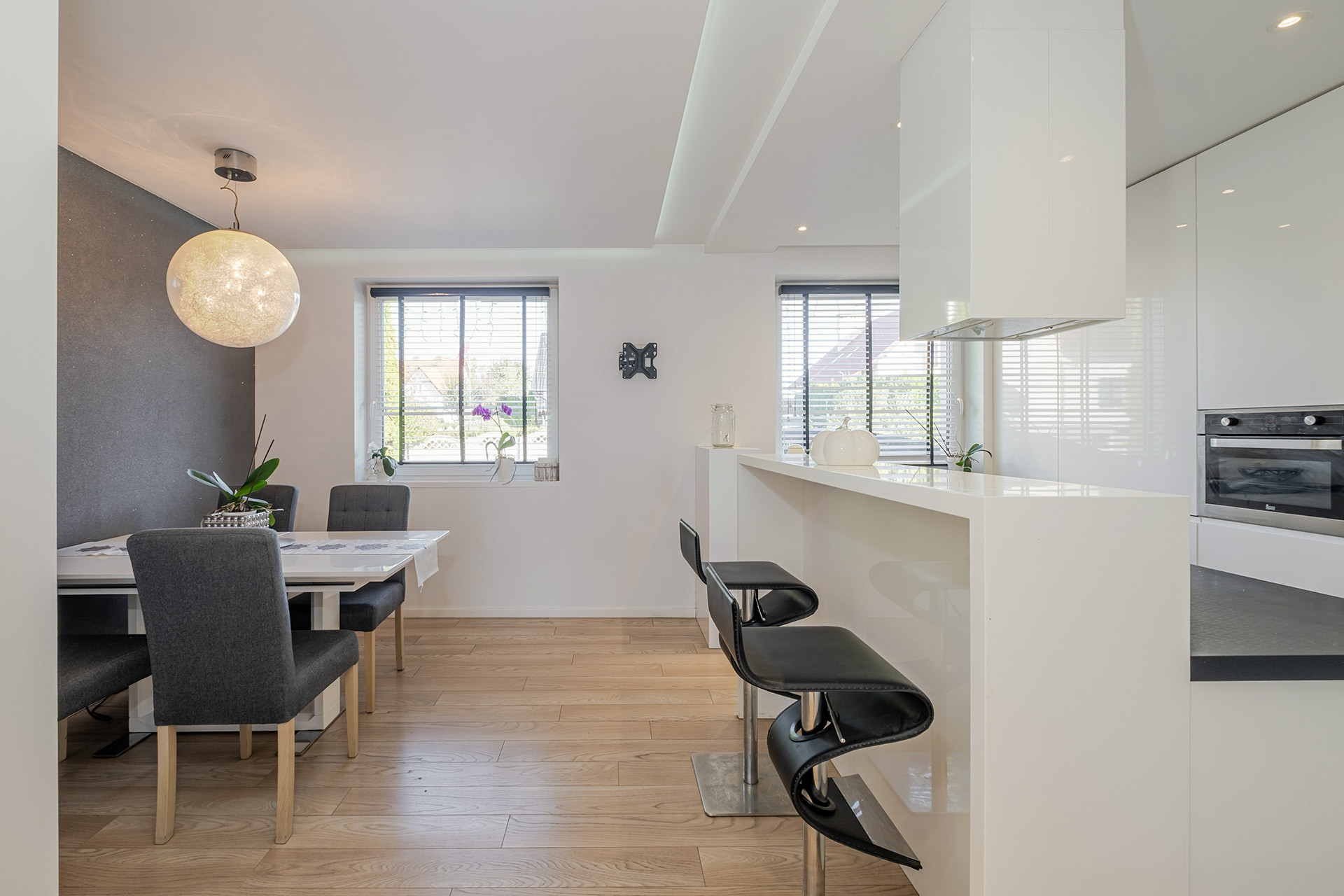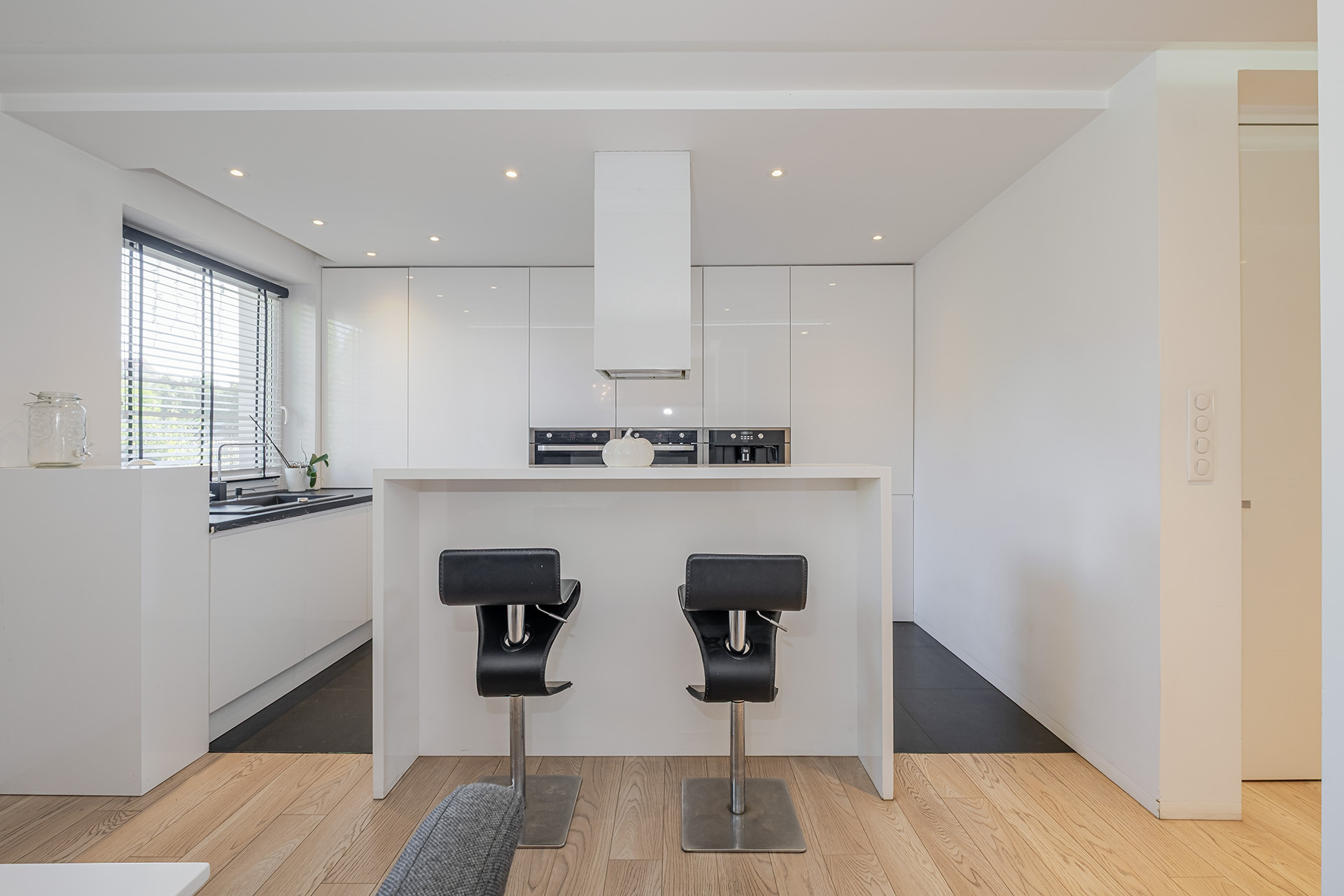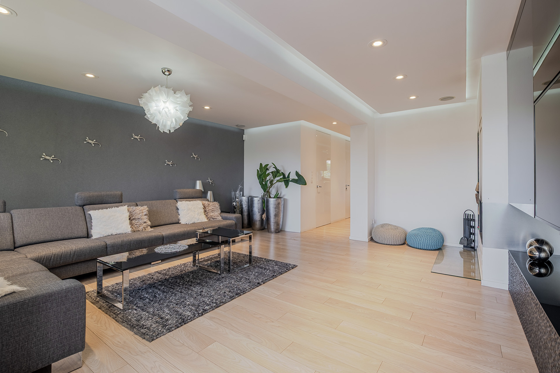 -Stylowe bezprzylgowe drzwi oraz solidne bukowe schody, które nadają wnętrzu elegancji.